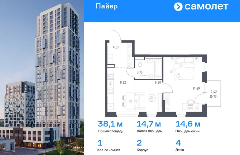Строим кварталы для жизни с заботой о будущем. Предлагается 1-комнатная квартира комфорт-класса 38,1 кв.м в корпусе 2 на 4 этаже, в ЖК «Пайер» Квартира с предчистовой отделкой. Доступность дополнительных опций уточняйте у застройщика. Приобрести квартиру возможно по специальным акциям от застройщика, с текущими условиями акций можно ознакомиться в блоке «Акций». Цена динамическая и может отличаться, уточняйте актуальность у застройщика. В жилом квартале «Пайер» мы сохранили уютную и беззаботную атмосферу. До центра Екатеринбурга — 15 минут на авто. Всего 20 минут прогулки - до большого парка на берегу реки Исеть и Ольховского пруда. Рядом работают детские сады, школа, магазины, пункты выдачи, аптеки и кафе. В приватном зеленом дворе-парке есть спортивная и игровая зона. Лаконичные фасады с открытыми террасами выглядят выразительно. Квартиры с предчистовой отделкой.#yan19-2r1774427#О застройщике