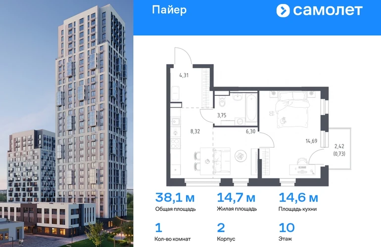 Предлагается 1-комнатная квартира комфорт-класса 38,1 кв.м в корпусе 2 на 10 этаже, в ЖК «Пайер» Квартира с предчистовой отделкой. Доступность дополнительных опций уточняйте у застройщика. Приобрести квартиру возможно по специальным акциям от застройщика, с текущими условиями акций можно ознакомиться в блоке “Акций”. Цена динамическая и может отличаться, уточняйте актуальность у застройщика. В жилом квартале «Пайер» мы сохранили уютную и беззаботную атмосферу. До центра Екатеринбурга — 15 минут на авто. Всего 20 минут прогулки - до большого парка на берегу реки Исеть и Ольховского пруда. Рядом работают детские сады, школа, магазины, пункты выдачи, аптеки и кафе. В приватном зеленом дворе-парке есть спортивная и игровая зона. Лаконичные фасады с открытыми террасами выглядят выразительно. Квартиры с предчистовой отделкой.#yan19-2r1778780#О застройщике