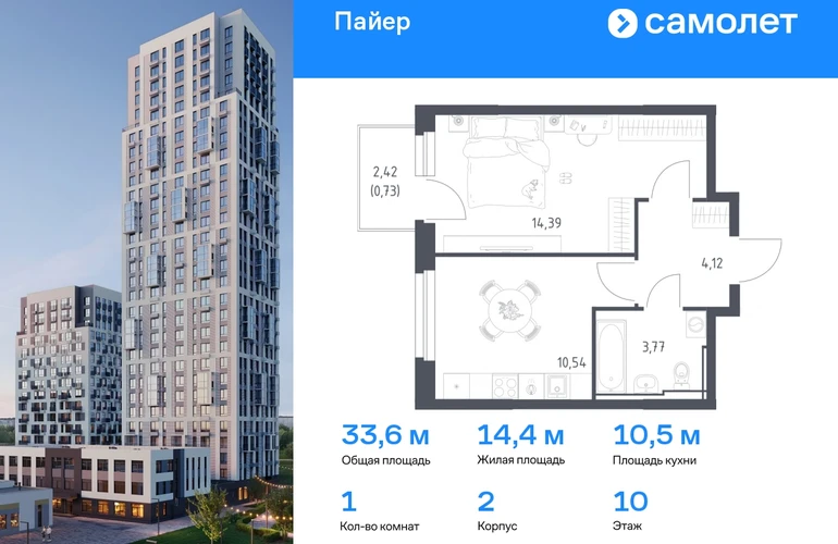 Предлагается 1-комнатная квартира комфорт-класса 33,55 кв.м в корпусе 2 на 10 этаже, в ЖК «Пайер» Квартира с предчистовой отделкой. Доступность дополнительных опций уточняйте у застройщика. Приобрести квартиру возможно по специальным акциям от застройщика, с текущими условиями акций можно ознакомиться в блоке «Акций». Цена динамическая и может отличаться, уточняйте актуальность у застройщика. В жилом квартале «Пайер» мы сохранили уютную и беззаботную атмосферу. До центра Екатеринбурга — 15 минут на авто. Всего 20 минут прогулки - до большого парка на берегу реки Исеть и Ольховского пруда. Рядом работают детские сады, школа, магазины, пункты выдачи, аптеки и кафе. В приватном зеленом дворе-парке есть спортивная и игровая зона. Лаконичные фасады с открытыми террасами выглядят выразительно. Квартиры с предчистовой отделкой.#yan19-2r1781283#О застройщике