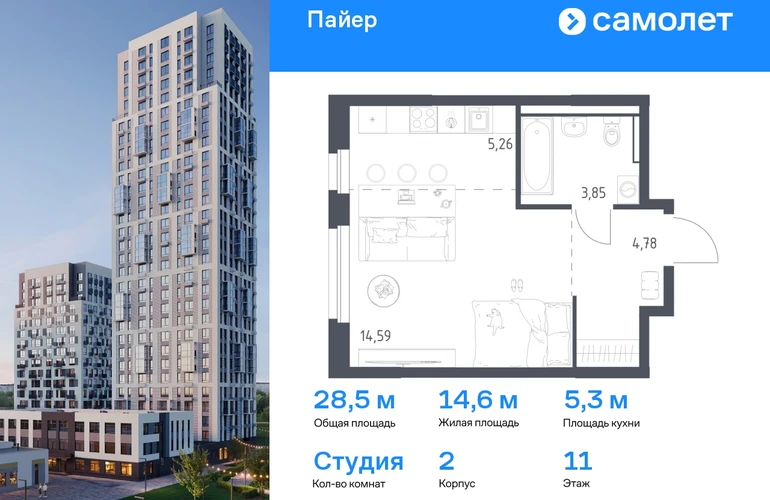 Строим кварталы для жизни с заботой о будущем. Предлагается квартира студия комфорт-класса 28,48 кв.м в корпусе 2 на 11 этаже, в ЖК «Пайер» Квартира с предчистовой отделкой. Доступность дополнительных опций уточняйте у застройщика. Приобрести квартиру возможно по специальным акциям от застройщика, с текущими условиями акций можно ознакомиться в блоке «Акций». Цена динамическая и может отличаться, уточняйте актуальность у застройщика. В жилом квартале «Пайер» мы сохранили уютную и беззаботную атмосферу. До центра Екатеринбурга — 15 минут на авто. Всего 20 минут прогулки - до большого парка на берегу реки Исеть и Ольховского пруда. Рядом работают детские сады, школа, магазины, пункты выдачи, аптеки и кафе. В приватном зеленом дворе-парке есть спортивная и игровая зона. Лаконичные фасады с открытыми террасами выглядят выразительно. Квартиры с предчистовой отделкой.#yan19-2r1796109#О застройщике