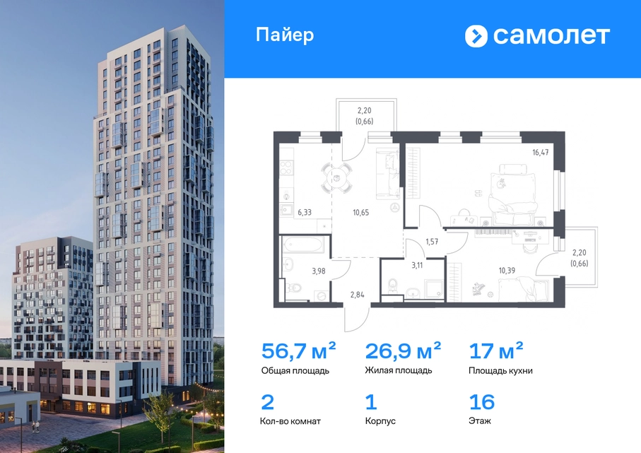 Строим кварталы для жизни с заботой о будущем. Предлагается 2-комнатная квартира комфорт-класса 56,66 кв.м в корпусе 1 на 16 этаже, в ЖК «Пайер» Квартира с предчистовой отделкой. Доступность дополнительных опций уточняйте у застройщика. Приобрести квартиру возможно по специальным акциям от застройщика, с текущими условиями акций можно ознакомиться в блоке «Акций». Цена динамическая и может отличаться, уточняйте актуальность у застройщика. В жилом квартале «Пайер» мы сохранили уютную и беззаботную атмосферу. До центра Екатеринбурга — 15 минут на авто. Всего 20 минут прогулки - до большого парка на берегу реки Исеть и Ольховского пруда. Рядом работают детские сады, школа, магазины, пункты выдачи, аптеки и кафе. В приватном зеленом дворе-парке есть спортивная и игровая зона. Лаконичные фасады с открытыми террасами выглядят выразительно. Квартиры с предчистовой отделкой.#yan19-2r1811125#О застройщике