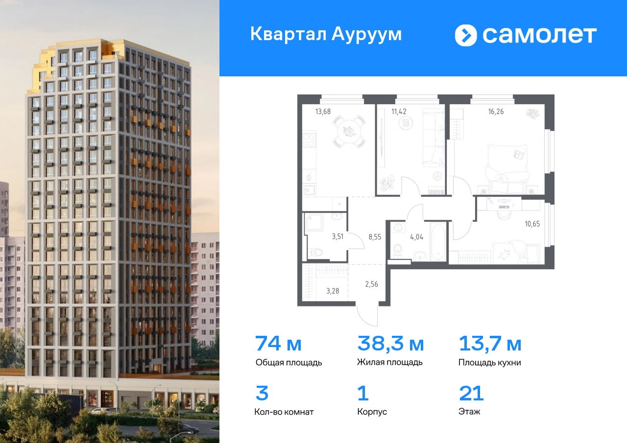 Предлагается 3-комнатная квартира бизнес-класса 73,95 кв.м в корпусе 1 на 21 этаже, в ЖК «Квартал Ауруум» Квартира с предчистовой отделкой. Доступность дополнительных опций уточняйте у застройщика. Приобрести квартиру возможно по специальным акциям от застройщика, с текущими условиями акций можно ознакомиться в блоке “Акций”. Цена динамическая и может отличаться, уточняйте актуальность у застройщика. «Квартал Ауруум» — это море зелени под вашими окнами и жизнь в уютном квартале с собственной инфраструктурой. До центра города — всего 15 минут на авто. Жилой квартал находится в развитом районе, где все необходимое рядом — свой детский сад, магазины, кафе и школа — через дорогу. 4 разновысотных корпуса, от 14 до 31 этажа, дарят ощущение простора и много естественного света в квартирах. Для неспешных прогулок - приватный двор-сад или Основинский парк у подножия комплекса. Для авто — подземный паркинг. Все квартиры с предчистовой отделкой.#yan19-2r1741240#О застройщике