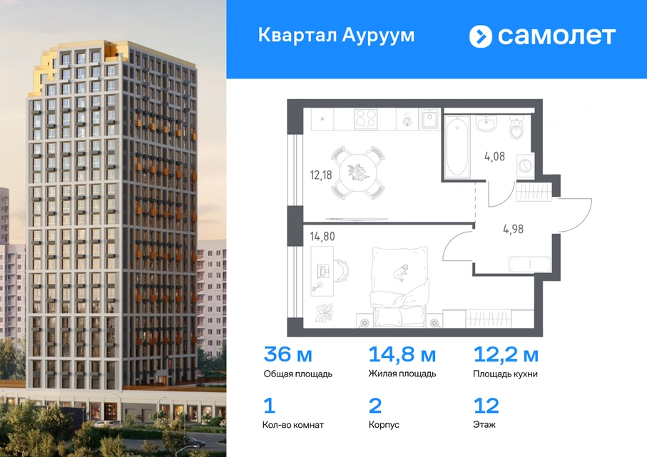 Предлагается 1-комнатная квартира бизнес-класса 36,04 кв.м в корпусе 2 на 12 этаже, в ЖК «Квартал Ауруум» Квартира с предчистовой отделкой. Доступность дополнительных опций уточняйте у застройщика. Приобрести квартиру возможно по специальным акциям от застройщика, с текущими условиями акций можно ознакомиться в блоке “Акций”. Цена динамическая и может отличаться, уточняйте актуальность у застройщика. «Квартал Ауруум» — это море зелени под вашими окнами и жизнь в уютном квартале с собственной инфраструктурой. До центра города — всего 15 минут на авто. Жилой квартал находится в развитом районе, где все необходимое рядом — свой детский сад, магазины, кафе и школа — через дорогу. 4 разновысотных корпуса, от 14 до 31 этажа, дарят ощущение простора и много естественного света в квартирах. Для неспешных прогулок - приватный двор-сад или Основинский парк у подножия комплекса. Для авто — подземный паркинг. Все квартиры с предчистовой отделкой.#yan19-2r1741272#О застройщике
