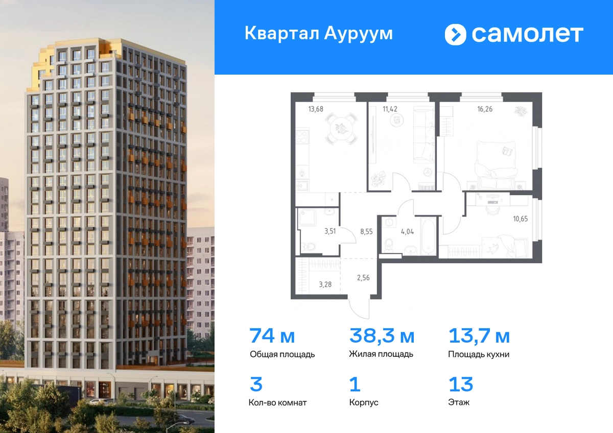 Предлагается 3-комнатная квартира бизнес-класса 73,95 кв.м в корпусе 1 на 13 этаже, в ЖК «Квартал Ауруум» Квартира с предчистовой отделкой. Доступность дополнительных опций уточняйте у застройщика. Приобрести квартиру возможно по специальным акциям от застройщика, с текущими условиями акций можно ознакомиться в блоке “Акций”. Цена динамическая и может отличаться, уточняйте актуальность у застройщика. «Квартал Ауруум» — это море зелени под вашими окнами и жизнь в уютном квартале с собственной инфраструктурой. До центра города — всего 15 минут на авто. Жилой квартал находится в развитом районе, где все необходимое рядом — свой детский сад, магазины, кафе и школа — через дорогу. 4 разновысотных корпуса, от 14 до 31 этажа, дарят ощущение простора и много естественного света в квартирах. Для неспешных прогулок - приватный двор-сад или Основинский парк у подножия комплекса. Для авто — подземный паркинг. Все квартиры с предчистовой отделкой.#yan19-2r1744851#О застройщике