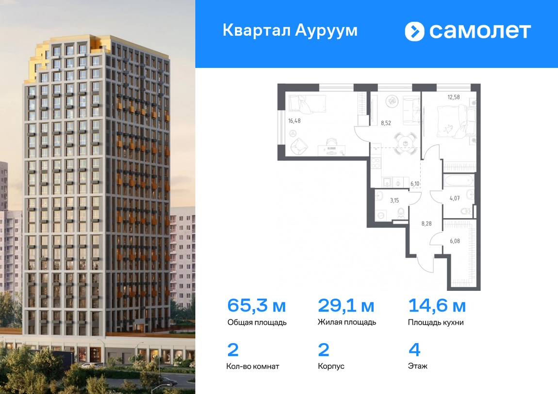 Предлагается 2-комнатная квартира бизнес-класса 65,26 кв.м в корпусе 2 на 4 этаже, в ЖК «Квартал Ауруум» Квартира с предчистовой отделкой. Доступность дополнительных опций уточняйте у застройщика. Приобрести квартиру возможно по специальным акциям от застройщика, с текущими условиями акций можно ознакомиться в блоке “Акций”. Цена динамическая и может отличаться, уточняйте актуальность у застройщика. «Квартал Ауруум» — это море зелени под вашими окнами и жизнь в уютном квартале с собственной инфраструктурой. До центра города — всего 15 минут на авто. Жилой квартал находится в развитом районе, где все необходимое рядом — свой детский сад, магазины, кафе и школа — через дорогу. 4 разновысотных корпуса, от 14 до 31 этажа, дарят ощущение простора и много естественного света в квартирах. Для неспешных прогулок - приватный двор-сад или Основинский парк у подножия комплекса. Для авто — подземный паркинг. Все квартиры с предчистовой отделкой.#yan19-2r1744904#О застройщике