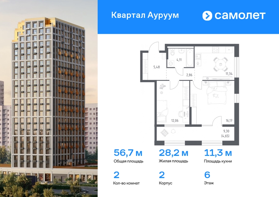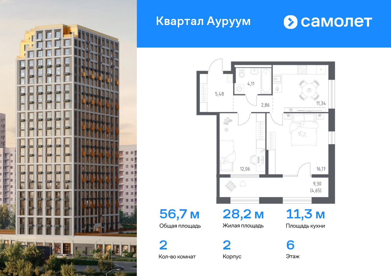 Предлагается 2-комнатная квартира бизнес-класса 56,67 кв.м в корпусе 2 на 6 этаже, в ЖК «Квартал Ауруум» Квартира с предчистовой отделкой. Доступность дополнительных опций уточняйте у застройщика. Приобрести квартиру возможно по специальным акциям от застройщика, с текущими условиями акций можно ознакомиться в блоке “Акций”. Цена динамическая и может отличаться, уточняйте актуальность у застройщика. «Квартал Ауруум» — это море зелени под вашими окнами и жизнь в уютном квартале с собственной инфраструктурой. До центра города — всего 15 минут на авто. Жилой квартал находится в развитом районе, где все необходимое рядом — свой детский сад, магазины, кафе и школа — через дорогу. 4 разновысотных корпуса, от 14 до 31 этажа, дарят ощущение простора и много естественного света в квартирах. Для неспешных прогулок - приватный двор-сад или Основинский парк у подножия комплекса. Для авто — подземный паркинг. Все квартиры с предчистовой отделкой.#yan19-2r1744905#О застройщике