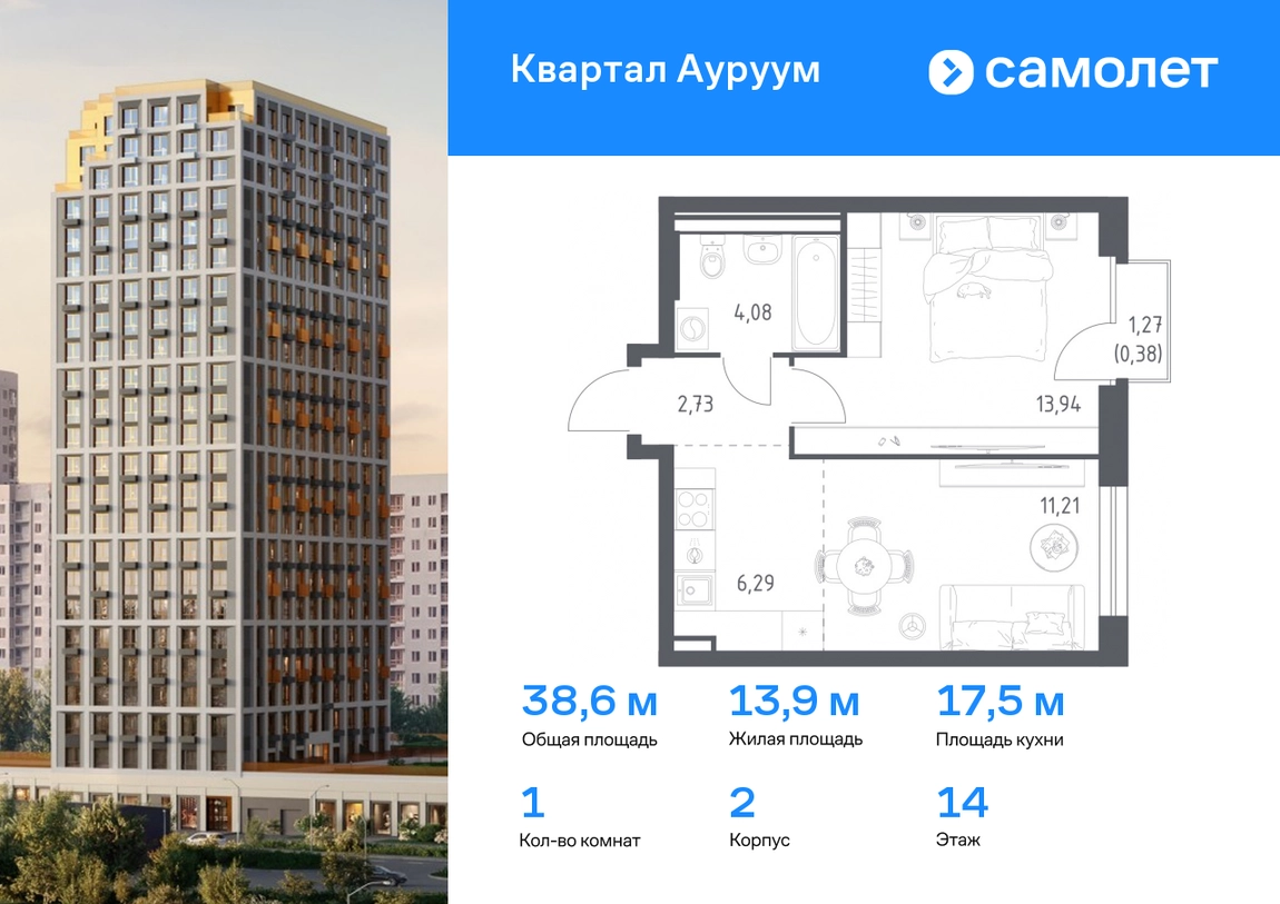 Предлагается 1-комнатная квартира бизнес-класса 38,63 кв.м в корпусе 2 на 14 этаже, в ЖК «Квартал Ауруум» Квартира с предчистовой отделкой. Доступность дополнительных опций уточняйте у застройщика. Приобрести квартиру возможно по специальным акциям от застройщика, с текущими условиями акций можно ознакомиться в блоке “Акций”. Цена динамическая и может отличаться, уточняйте актуальность у застройщика. «Квартал Ауруум» — это море зелени под вашими окнами и жизнь в уютном квартале с собственной инфраструктурой. До центра города — всего 15 минут на авто. Жилой квартал находится в развитом районе, где все необходимое рядом — свой детский сад, магазины, кафе и школа — через дорогу. 4 разновысотных корпуса, от 14 до 31 этажа, дарят ощущение простора и много естественного света в квартирах. Для неспешных прогулок - приватный двор-сад или Основинский парк у подножия комплекса. Для авто — подземный паркинг. Все квартиры с предчистовой отделкой.#yan19-2r1744913#О застройщике