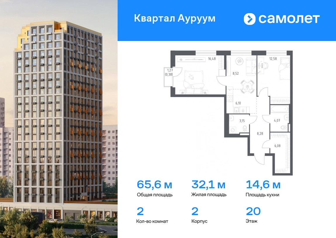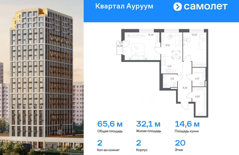 Предлагается 2-комнатная квартира бизнес-класса 65,64 кв.м в корпусе 2 на 20 этаже, в ЖК «Квартал Ауруум» Квартира с предчистовой отделкой. Доступность дополнительных опций уточняйте у застройщика. Приобрести квартиру возможно по специальным акциям от застройщика, с текущими условиями акций можно ознакомиться в блоке “Акций”. Цена динамическая и может отличаться, уточняйте актуальность у застройщика. «Квартал Ауруум» — это море зелени под вашими окнами и жизнь в уютном квартале с собственной инфраструктурой. До центра города — всего 15 минут на авто. Жилой квартал находится в развитом районе, где все необходимое рядом — свой детский сад, магазины, кафе и школа — через дорогу. 4 разновысотных корпуса, от 14 до 31 этажа, дарят ощущение простора и много естественного света в квартирах. Для неспешных прогулок - приватный двор-сад или Основинский парк у подножия комплекса. Для авто — подземный паркинг. Все квартиры с предчистовой отделкой.#yan19-2r1744923#О застройщике