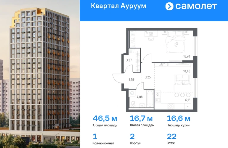 Предлагается 1-комнатная квартира бизнес-класса 46,45 кв.м в корпусе 2 на 22 этаже, в ЖК «Квартал Ауруум» Квартира с предчистовой отделкой. Доступность дополнительных опций уточняйте у застройщика. Приобрести квартиру возможно по специальным акциям от застройщика, с текущими условиями акций можно ознакомиться в блоке “Акций”. Цена динамическая и может отличаться, уточняйте актуальность у застройщика. «Квартал Ауруум» — это море зелени под вашими окнами и жизнь в уютном квартале с собственной инфраструктурой. До центра города — всего 15 минут на авто. Жилой квартал находится в развитом районе, где все необходимое рядом — свой детский сад, магазины, кафе и школа — через дорогу. 4 разновысотных корпуса, от 14 до 31 этажа, дарят ощущение простора и много естественного света в квартирах. Для неспешных прогулок - приватный двор-сад или Основинский парк у подножия комплекса. Для авто — подземный паркинг. Все квартиры с предчистовой отделкой.#yan19-2r1744930#О застройщике