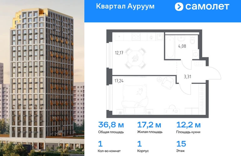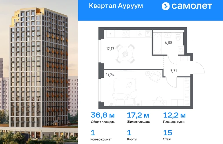 Предлагается 1-комнатная квартира бизнес-класса 36,8 кв.м в корпусе 1 на 15 этаже, в ЖК «Квартал Ауруум» Квартира с предчистовой отделкой. Доступность дополнительных опций уточняйте у застройщика. Приобрести квартиру возможно по специальным акциям от застройщика, с текущими условиями акций можно ознакомиться в блоке “Акций”. Цена динамическая и может отличаться, уточняйте актуальность у застройщика. «Квартал Ауруум» — это море зелени под вашими окнами и жизнь в уютном квартале с собственной инфраструктурой. До центра города — всего 15 минут на авто. Жилой квартал находится в развитом районе, где все необходимое рядом — свой детский сад, магазины, кафе и школа — через дорогу. 4 разновысотных корпуса, от 14 до 31 этажа, дарят ощущение простора и много естественного света в квартирах. Для неспешных прогулок - приватный двор-сад или Основинский парк у подножия комплекса. Для авто — подземный паркинг. Все квартиры с предчистовой отделкой.#yan19-2r1746252#О застройщике