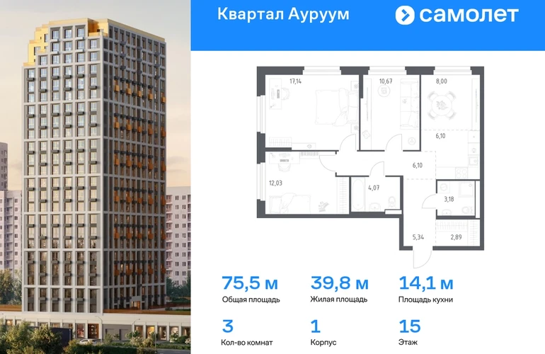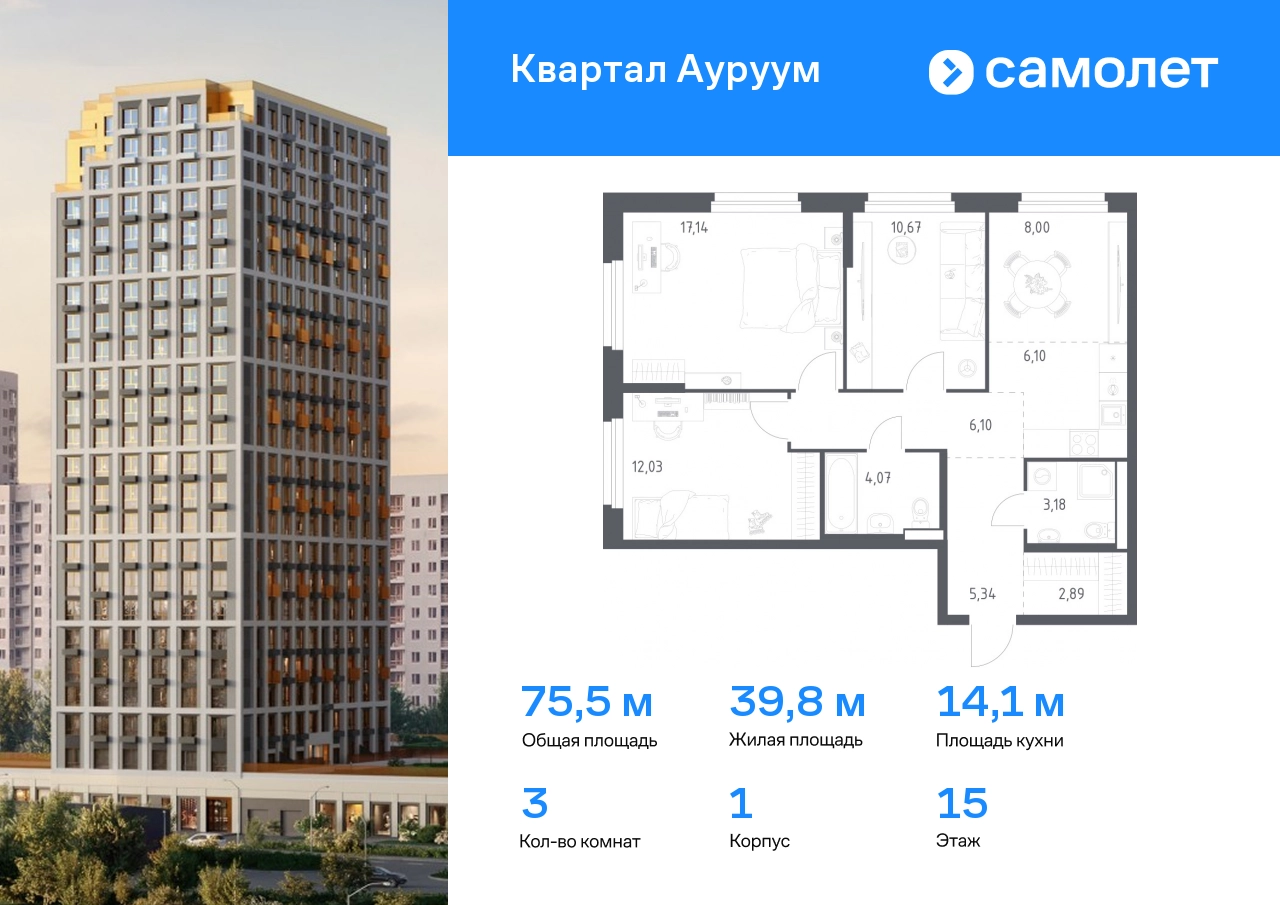 Предлагается 3-комнатная квартира бизнес-класса 75,52 кв.м в корпусе 1 на 15 этаже, в ЖК «Квартал Ауруум» Квартира с предчистовой отделкой. Доступность дополнительных опций уточняйте у застройщика. Приобрести квартиру возможно по специальным акциям от застройщика, с текущими условиями акций можно ознакомиться в блоке “Акций”. Цена динамическая и может отличаться, уточняйте актуальность у застройщика. «Квартал Ауруум» — это море зелени под вашими окнами и жизнь в уютном квартале с собственной инфраструктурой. До центра города — всего 15 минут на авто. Жилой квартал находится в развитом районе, где все необходимое рядом — свой детский сад, магазины, кафе и школа — через дорогу. 4 разновысотных корпуса, от 14 до 31 этажа, дарят ощущение простора и много естественного света в квартирах. Для неспешных прогулок - приватный двор-сад или Основинский парк у подножия комплекса. Для авто — подземный паркинг. Все квартиры с предчистовой отделкой.#yan19-2r1746253#О застройщике