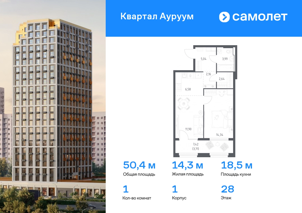 Предлагается 1-комнатная квартира бизнес-класса 50,36 кв.м в корпусе 1 на 28 этаже, в ЖК «Квартал Ауруум» Квартира с предчистовой отделкой. Доступность дополнительных опций уточняйте у застройщика. Приобрести квартиру возможно по специальным акциям от застройщика, с текущими условиями акций можно ознакомиться в блоке “Акций”. Цена динамическая и может отличаться, уточняйте актуальность у застройщика. «Квартал Ауруум» — это море зелени под вашими окнами и жизнь в уютном квартале с собственной инфраструктурой. До центра города — всего 15 минут на авто. Жилой квартал находится в развитом районе, где все необходимое рядом — свой детский сад, магазины, кафе и школа — через дорогу. 4 разновысотных корпуса, от 14 до 31 этажа, дарят ощущение простора и много естественного света в квартирах. Для неспешных прогулок - приватный двор-сад или Основинский парк у подножия комплекса. Для авто — подземный паркинг. Все квартиры с предчистовой отделкой.#yan19-2r1747546#О застройщике