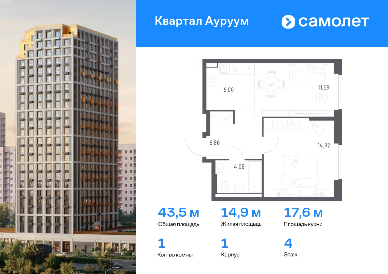 Предлагается 1-комнатная квартира бизнес-класса 43,45 кв.м в корпусе 1 на 4 этаже, в ЖК «Квартал Ауруум» Квартира с предчистовой отделкой. Доступность дополнительных опций уточняйте у застройщика. Приобрести квартиру возможно по специальным акциям от застройщика, с текущими условиями акций можно ознакомиться в блоке “Акций”. Цена динамическая и может отличаться, уточняйте актуальность у застройщика. «Квартал Ауруум» — это море зелени под вашими окнами и жизнь в уютном квартале с собственной инфраструктурой. До центра города — всего 15 минут на авто. Жилой квартал находится в развитом районе, где все необходимое рядом — свой детский сад, магазины, кафе и школа — через дорогу. 4 разновысотных корпуса, от 14 до 31 этажа, дарят ощущение простора и много естественного света в квартирах. Для неспешных прогулок - приватный двор-сад или Основинский парк у подножия комплекса. Для авто — подземный паркинг. Все квартиры с предчистовой отделкой.#yan19-2r1754923#О застройщике