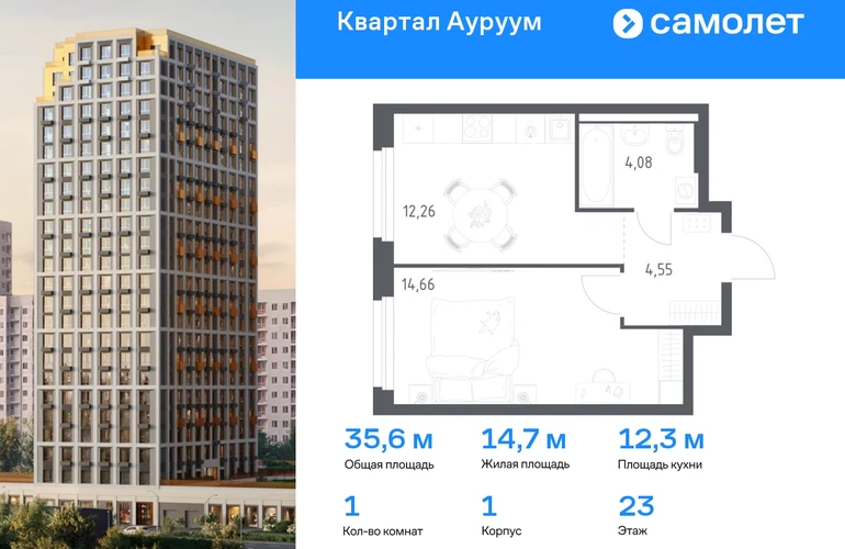 Предлагается 1-комнатная квартира бизнес-класса 35,9 кв.м в корпусе 1 на 23 этаже, в ЖК «Квартал Ауруум» Квартира с предчистовой отделкой. Доступность дополнительных опций уточняйте у застройщика. Приобрести квартиру возможно по специальным акциям от застройщика, с текущими условиями акций можно ознакомиться в блоке «Акций». Цена динамическая и может отличаться, уточняйте актуальность у застройщика. «Квартал Ауруум» — это море зелени под вашими окнами и жизнь в уютном квартале с собственной инфраструктурой. До центра города — всего 15 минут на авто. Жилой квартал находится в развитом районе, где все необходимое рядом — свой детский сад, магазины, кафе и школа — через дорогу. 4 разновысотных корпуса, от 14 до 31 этажа, дарят ощущение простора и много естественного света в квартирах. Для неспешных прогулок - приватный двор-сад или Основинский парк у подножия комплекса. Для авто — подземный паркинг. Все квартиры с предчистовой отделкой.#yan19-2r1770118#О застройщике