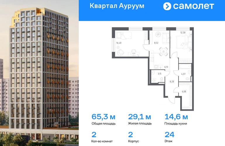 Строим кварталы для жизни с заботой о будущем. Предлагается 2-комнатная квартира бизнес-класса 64 кв.м в корпусе 2 на 24 этаже, в ЖК «Квартал Ауруум» Квартира с предчистовой отделкой. Доступность дополнительных опций уточняйте у застройщика. Приобрести квартиру возможно по специальным акциям от застройщика, с текущими условиями акций можно ознакомиться в блоке «Акций». Цена динамическая и может отличаться, уточняйте актуальность у застройщика. «Квартал Ауруум» — это море зелени под вашими окнами и жизнь в уютном квартале с собственной инфраструктурой. До центра города — всего 15 минут на авто. Жилой квартал находится в развитом районе, где все необходимое рядом — свой детский сад, магазины, кафе и школа — через дорогу. 4 разновысотных корпуса, от 14 до 31 этажа, дарят ощущение простора и много естественного света в квартирах. Для неспешных прогулок - приватный двор-сад или Основинский парк у подножия комплекса. Для авто — подземный паркинг. Все квартиры с предчистовой отделкой.#yan19-2r1770120#О застройщике