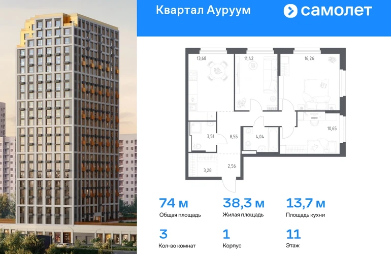 Строим кварталы для жизни с заботой о будущем. Предлагается 3-комнатная квартира бизнес-класса 71,9 кв.м в корпусе 1 на 11 этаже, в ЖК «Квартал Ауруум» Квартира с предчистовой отделкой. Доступность дополнительных опций уточняйте у застройщика. Приобрести квартиру возможно по специальным акциям от застройщика, с текущими условиями акций можно ознакомиться в блоке «Акций». Цена динамическая и может отличаться, уточняйте актуальность у застройщика. «Квартал Ауруум» — это море зелени под вашими окнами и жизнь в уютном квартале с собственной инфраструктурой. До центра города — всего 15 минут на авто. Жилой квартал находится в развитом районе, где все необходимое рядом — свой детский сад, магазины, кафе и школа — через дорогу. 4 разновысотных корпуса, от 14 до 31 этажа, дарят ощущение простора и много естественного света в квартирах. Для неспешных прогулок - приватный двор-сад или Основинский парк у подножия комплекса. Для авто — подземный паркинг. Все квартиры с предчистовой отделкой.#yan19-2r1790462#О застройщике