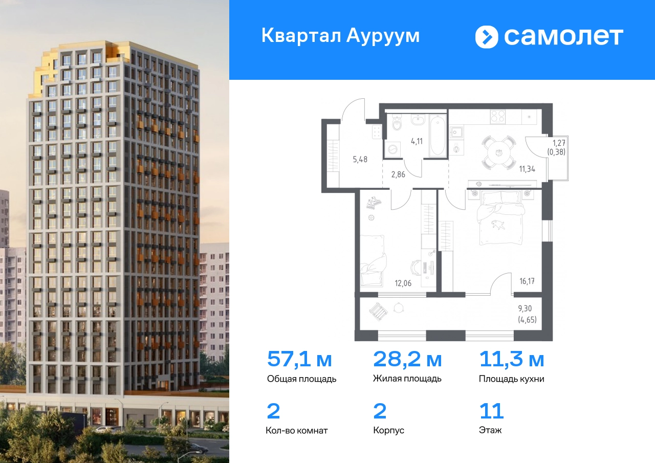 Предлагается 2-комнатная квартира бизнес-класса 55,9 кв.м в корпусе 2 на 11 этаже, в ЖК «Квартал Ауруум» Квартира с предчистовой отделкой. Доступность дополнительных опций уточняйте у застройщика. Приобрести квартиру возможно по специальным акциям от застройщика, с текущими условиями акций можно ознакомиться в блоке “Акций”. Цена динамическая и может отличаться, уточняйте актуальность у застройщика. «Квартал Ауруум» — это море зелени под вашими окнами и жизнь в уютном квартале с собственной инфраструктурой. До центра города — всего 15 минут на авто. Жилой квартал находится в развитом районе, где все необходимое рядом — свой детский сад, магазины, кафе и школа — через дорогу. 4 разновысотных корпуса, от 14 до 31 этажа, дарят ощущение простора и много естественного света в квартирах. Для неспешных прогулок - приватный двор-сад или Основинский парк у подножия комплекса. Для авто — подземный паркинг. Все квартиры с предчистовой отделкой.#yan19-2r1790547#О застройщике