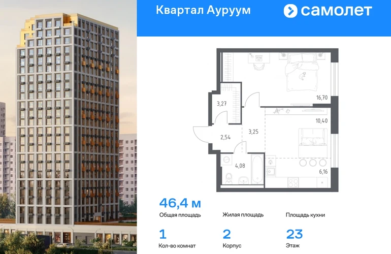 Строим кварталы для жизни с заботой о будущем. Предлагается 1-комнатная квартира бизнес-класса 45,4 кв.м в корпусе 2 на 23 этаже, в ЖК «Квартал Ауруум» Квартира с предчистовой отделкой. Доступность дополнительных опций уточняйте у застройщика. Приобрести квартиру возможно по специальным акциям от застройщика, с текущими условиями акций можно ознакомиться в блоке «Акций». Цена динамическая и может отличаться, уточняйте актуальность у застройщика. «Квартал Ауруум» — это море зелени под вашими окнами и жизнь в уютном квартале с собственной инфраструктурой. До центра города — всего 15 минут на авто. Жилой квартал находится в развитом районе, где все необходимое рядом — свой детский сад, магазины, кафе и школа — через дорогу. 4 разновысотных корпуса, от 14 до 31 этажа, дарят ощущение простора и много естественного света в квартирах. Для неспешных прогулок - приватный двор-сад или Основинский парк у подножия комплекса. Для авто — подземный паркинг. Все квартиры с предчистовой отделкой.#yan19-2r1790610#О застройщике