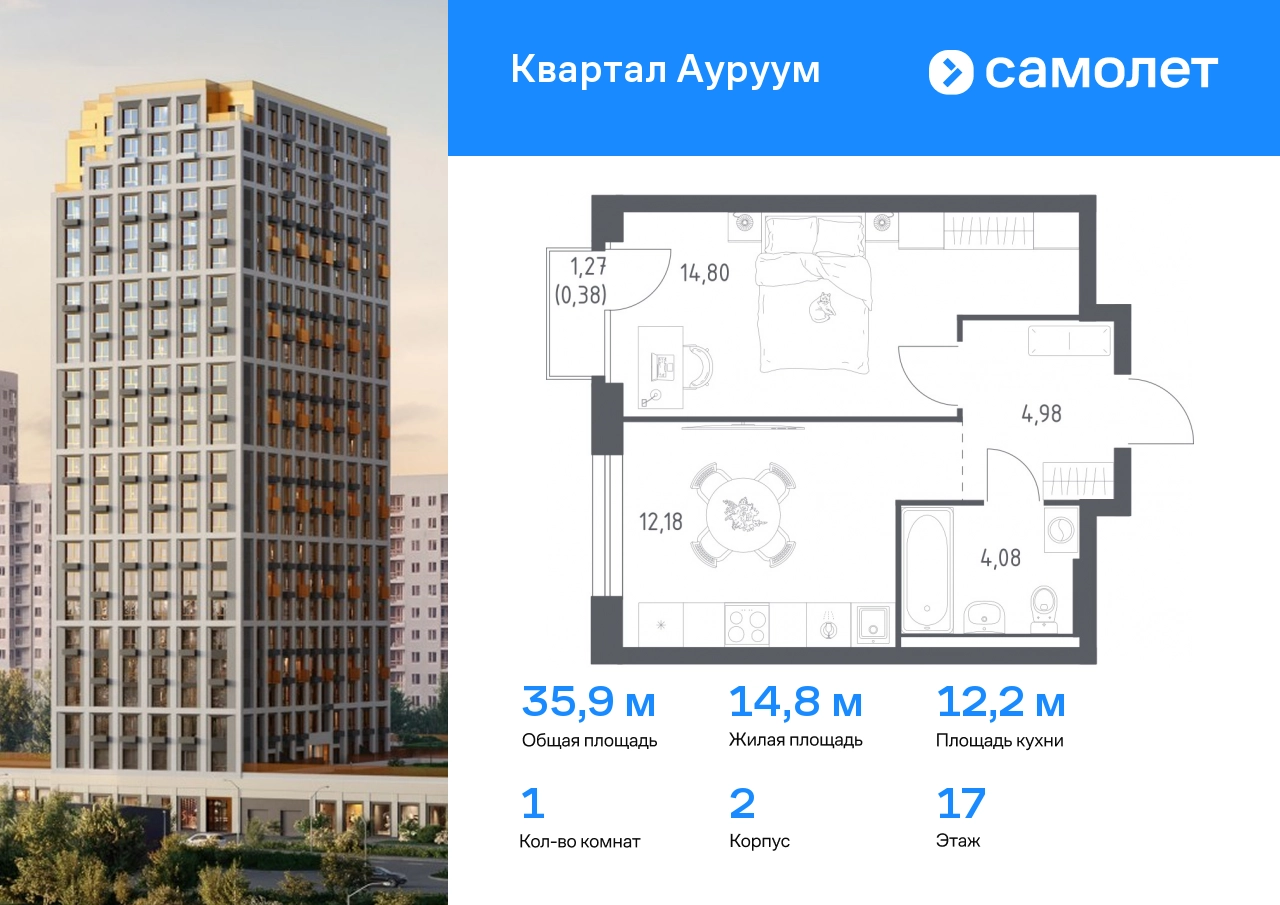 Предлагается 1-комнатная квартира бизнес-класса 35,9 кв.м в корпусе 2 на 17 этаже, в ЖК «Квартал Ауруум» Квартира с предчистовой отделкой. Доступность дополнительных опций уточняйте у застройщика. Приобрести квартиру возможно по специальным акциям от застройщика, с текущими условиями акций можно ознакомиться в блоке «Акций». Цена динамическая и может отличаться, уточняйте актуальность у застройщика. «Квартал Ауруум» — это море зелени под вашими окнами и жизнь в уютном квартале с собственной инфраструктурой. До центра города — всего 15 минут на авто. Жилой квартал находится в развитом районе, где все необходимое рядом — свой детский сад, магазины, кафе и школа — через дорогу. 4 разновысотных корпуса, от 14 до 31 этажа, дарят ощущение простора и много естественного света в квартирах. Для неспешных прогулок - приватный двор-сад или Основинский парк у подножия комплекса. Для авто — подземный паркинг. Все квартиры с предчистовой отделкой.#yan19-2r1797804#О застройщике