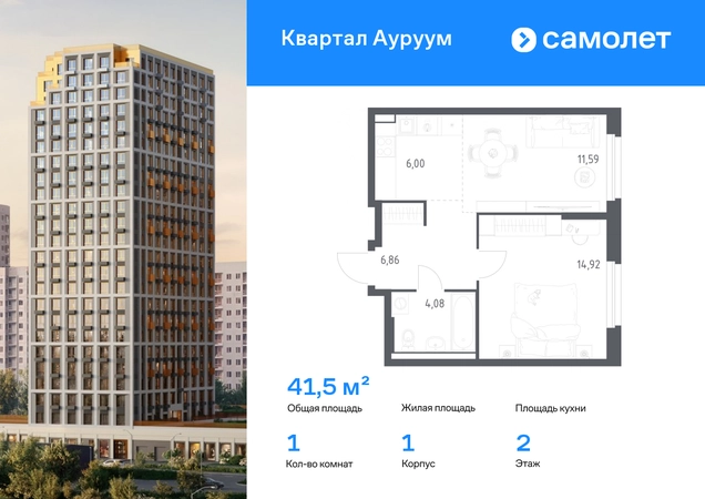 Строим кварталы для жизни с заботой о будущем. Предлагается 1-комнатная квартира бизнес-класса 41,5 кв.м в корпусе 1 на 2 этаже, в ЖК «Квартал Ауруум» Квартира с предчистовой отделкой. Доступность дополнительных опций уточняйте у застройщика. Приобрести квартиру возможно по специальным акциям от застройщика, с текущими условиями акций можно ознакомиться в блоке «Акций». Цена динамическая и может отличаться, уточняйте актуальность у застройщика. «Квартал Ауруум» — это море зелени под вашими окнами и жизнь в уютном квартале с собственной инфраструктурой. До центра города — всего 15 минут на авто. Жилой квартал находится в развитом районе, где все необходимое рядом — свой детский сад, магазины, кафе и школа — через дорогу. 4 разновысотных корпуса, от 14 до 31 этажа, дарят ощущение простора и много естественного света в квартирах. Для неспешных прогулок - приватный двор-сад или Основинский парк у подножия комплекса. Для авто — подземный паркинг. Все квартиры с предчистовой отделкой.#yan19-2r1815843#О застройщике