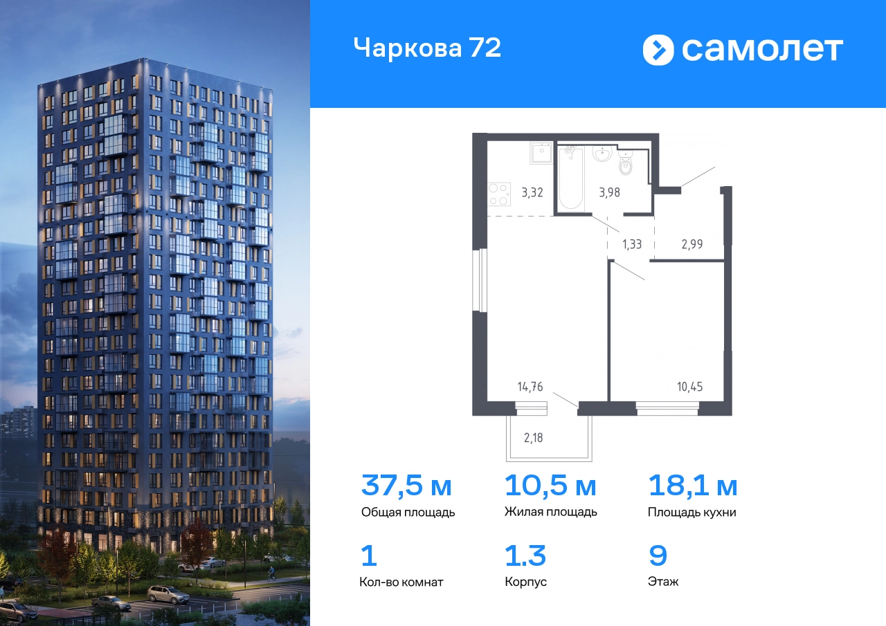 Строим кварталы для жизни с заботой о будущем. Предлагается 1-комнатная квартира комфорт-класса 37,48 кв.м в корпусе 1.3 на 9 этаже, в ЖК «Чаркова 72» Квартира с предчистовой отделкой. Доступность дополнительных опций уточняйте у застройщика. Приобрести квартиру возможно по специальным акциям от застройщика, с текущими условиями акций можно ознакомиться в блоке «Акций». Цена динамическая и может отличаться, уточняйте актуальность у застройщика. Идеальное сочетание городского комфорта и размеренной жизни — квартал «Чаркова 72» на северо-востоке города. В дизайне 17-24-этажных домов с панорамными балконами нашли отражение нотки сибирской природы. От «Чаркова 72» удобно добираться до центра города — всего 17 минут пути. А в 2 минутах от дома находится Тобольский тракт. Для семейного отдыха отлично подойдет парк Гагарина — он находится в 7 минутах от квартала. В закрытых дворах тихо и уютно — все авто остались на одном из 4 многоуровневых паркингов, которые находятся за территорией квартала. Можно спокойно гулять по бульвару и заниматься йогой на спортивной площадке. На первых этажах домов — кафе и магазины. Рядом с проектом — детские сады и школы, городская поликлиника и МФЦ. Во всех квартирах есть выводы под кондиционеры, на подземных этажах — индивидуальные кладовые, на первых — места для хранения велосипедов и колясок. В квартирах можно выбрать варианты отделки: чистовая, черновая и улучшенная из материалов повышенного класса.#yan19-2r1517930#О застройщике