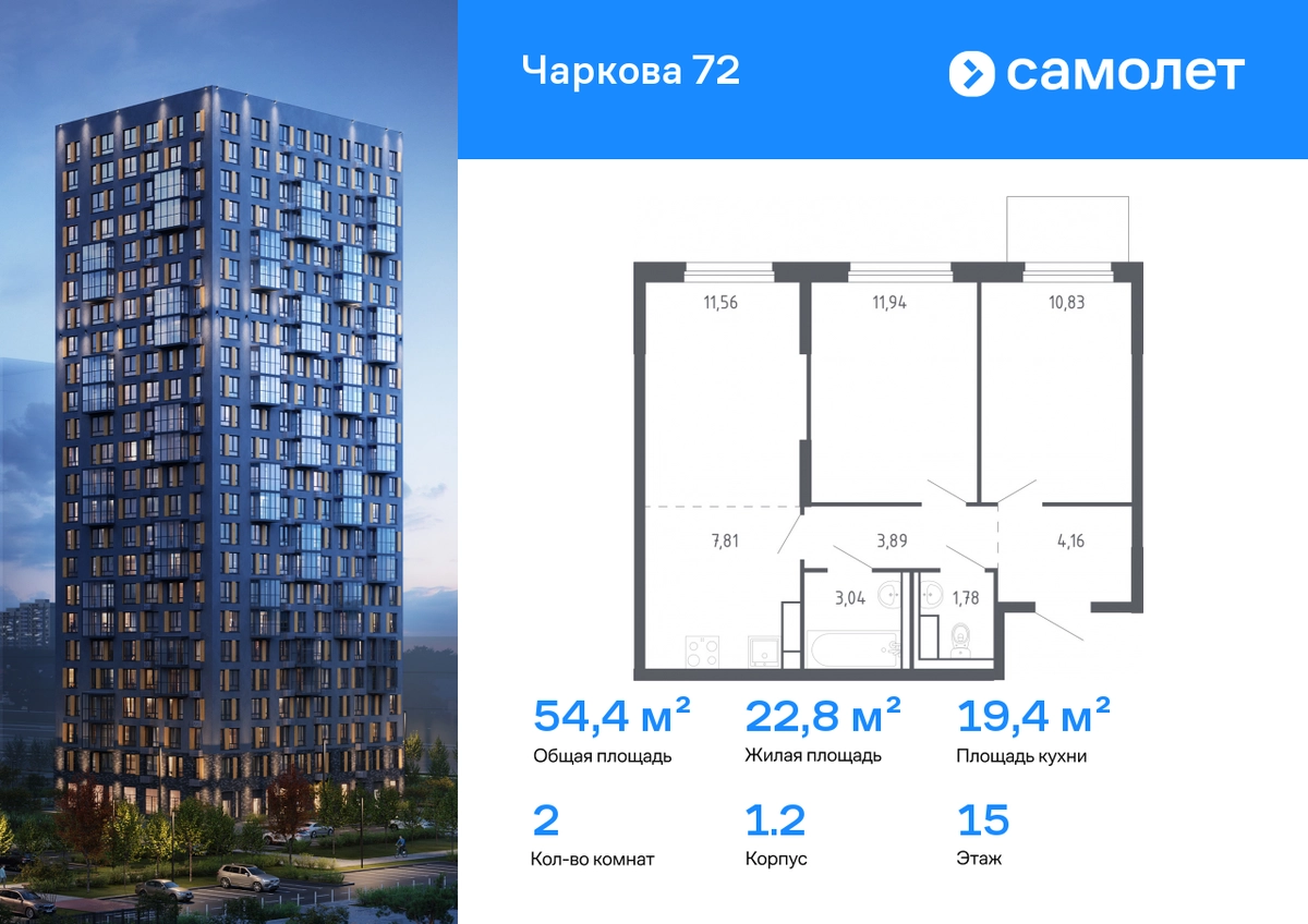 Строим кварталы для жизни с заботой о будущем. Предлагается 2-комнатная квартира комфорт-класса 54,4 кв.м в корпусе 1.2 на 15 этаже, в ЖК «Чаркова 72» Квартира с чистовой отделкой. Доступность дополнительных опций уточняйте у застройщика. Приобрести квартиру возможно по специальным акциям от застройщика, с текущими условиями акций можно ознакомиться в блоке «Акций». Цена динамическая и может отличаться, уточняйте актуальность у застройщика. Идеальное сочетание городского комфорта и размеренной жизни — квартал «Чаркова 72» на северо-востоке города. В дизайне 17-24-этажных домов с панорамными балконами нашли отражение нотки сибирской природы. От «Чаркова 72» удобно добираться до центра города — всего 17 минут пути. А в 2 минутах от дома находится Тобольский тракт. Для семейного отдыха отлично подойдет парк Гагарина — он находится в 7 минутах от квартала. В закрытых дворах тихо и уютно — все авто остались на одном из 4 многоуровневых паркингов, которые находятся за территорией квартала. Можно спокойно гулять по бульвару и заниматься йогой на спортивной площадке. На первых этажах домов — кафе и магазины. Рядом с проектом — детские сады и школы, городская поликлиника и МФЦ. Во всех квартирах есть выводы под кондиционеры, на подземных этажах — индивидуальные кладовые, на первых — места для хранения велосипедов и колясок. В квартирах можно выбрать варианты отделки: чистовая, черновая и улучшенная из материалов повышенного класса.#yan19-2r1540545#О застройщике