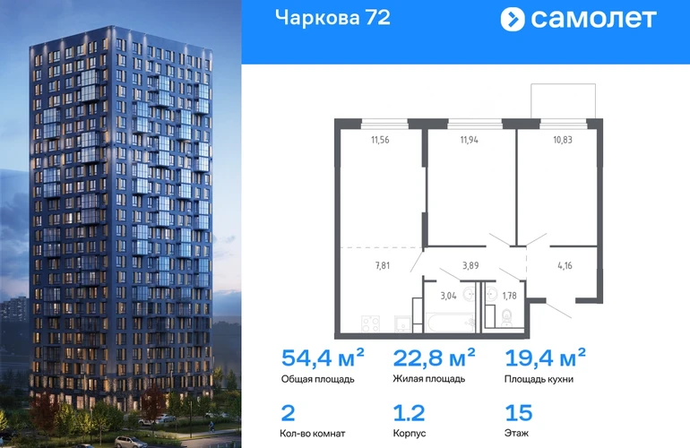 Строим кварталы для жизни с заботой о будущем. Предлагается 2-комнатная квартира комфорт-класса 54,4 кв.м в корпусе 1.2 на 15 этаже, в ЖК «Чаркова 72» Квартира с чистовой отделкой. Доступность дополнительных опций уточняйте у застройщика. Приобрести квартиру возможно по специальным акциям от застройщика, с текущими условиями акций можно ознакомиться в блоке «Акций». Цена динамическая и может отличаться, уточняйте актуальность у застройщика. Идеальное сочетание городского комфорта и размеренной жизни — квартал «Чаркова 72» на северо-востоке города. В дизайне 17-24-этажных домов с панорамными балконами нашли отражение нотки сибирской природы. От «Чаркова 72» удобно добираться до центра города — всего 17 минут пути. А в 2 минутах от дома находится Тобольский тракт. Для семейного отдыха отлично подойдет парк Гагарина — он находится в 7 минутах от квартала. В закрытых дворах тихо и уютно — все авто остались на одном из 4 многоуровневых паркингов, которые находятся за территорией квартала. Можно спокойно гулять по бульвару и заниматься йогой на спортивной площадке. На первых этажах домов — кафе и магазины. Рядом с проектом — детские сады и школы, городская поликлиника и МФЦ. Во всех квартирах есть выводы под кондиционеры, на подземных этажах — индивидуальные кладовые, на первых — места для хранения велосипедов и колясок. В квартирах можно выбрать варианты отделки: чистовая, черновая и улучшенная из материалов повышенного класса.#yan19-2r1540545#О застройщике