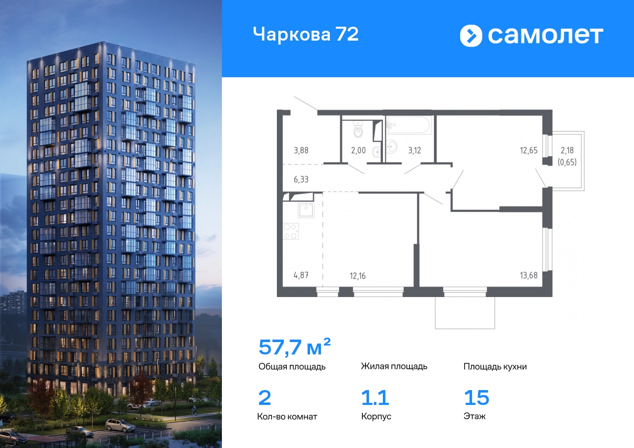 Строим кварталы для жизни с заботой о будущем. Предлагается 2-комнатная квартира комфорт-класса 58,4 кв.м в корпусе 1.1 на 15 этаже, в ЖК «Чаркова 72» Квартира с чистовой отделкой. Доступность дополнительных опций уточняйте у застройщика. Приобрести квартиру возможно по специальным акциям от застройщика, с текущими условиями акций можно ознакомиться в блоке «Акций». Цена динамическая и может отличаться, уточняйте актуальность у застройщика. Идеальное сочетание городского комфорта и размеренной жизни — квартал «Чаркова 72» на северо-востоке города. В дизайне 17-24-этажных домов с панорамными балконами нашли отражение нотки сибирской природы. От «Чаркова 72» удобно добираться до центра города — всего 17 минут пути. А в 2 минутах от дома находится Тобольский тракт. Для семейного отдыха отлично подойдет парк Гагарина — он находится в 7 минутах от квартала. В закрытых дворах тихо и уютно — все авто остались на одном из 4 многоуровневых паркингов, которые находятся за территорией квартала. Можно спокойно гулять по бульвару и заниматься йогой на спортивной площадке. На первых этажах домов — кафе и магазины. Рядом с проектом — детские сады и школы, городская поликлиника и МФЦ. Во всех квартирах есть выводы под кондиционеры, на подземных этажах — индивидуальные кладовые, на первых — места для хранения велосипедов и колясок. В квартирах можно выбрать варианты отделки: чистовая, черновая и улучшенная из материалов повышенного класса.#yan19-2r1574099#О застройщике