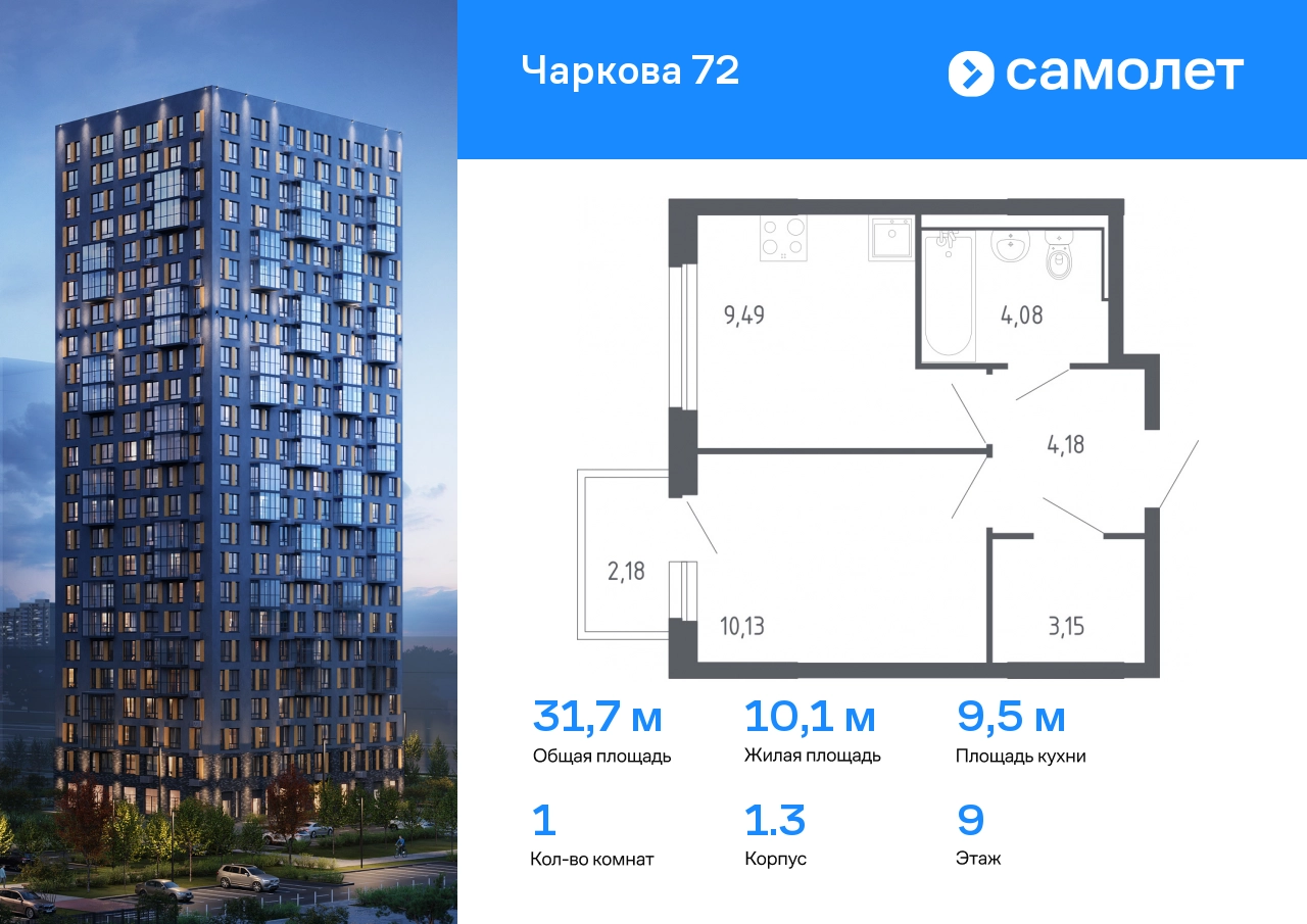 Строим кварталы для жизни с заботой о будущем. Предлагается 1-комнатная квартира комфорт-класса 31,68 кв.м в корпусе 1.3 на 9 этаже, в ЖК «Чаркова 72» Квартира с предчистовой отделкой. Доступность дополнительных опций уточняйте у застройщика. Приобрести квартиру возможно по специальным акциям от застройщика, с текущими условиями акций можно ознакомиться в блоке «Акций». Цена динамическая и может отличаться, уточняйте актуальность у застройщика. Идеальное сочетание городского комфорта и размеренной жизни — квартал «Чаркова 72» на северо-востоке города. В дизайне 17-24-этажных домов с панорамными балконами нашли отражение нотки сибирской природы. От «Чаркова 72» удобно добираться до центра города — всего 17 минут пути. А в 2 минутах от дома находится Тобольский тракт. Для семейного отдыха отлично подойдет парк Гагарина — он находится в 7 минутах от квартала. В закрытых дворах тихо и уютно — все авто остались на одном из 4 многоуровневых паркингов, которые находятся за территорией квартала. Можно спокойно гулять по бульвару и заниматься йогой на спортивной площадке. На первых этажах домов — кафе и магазины. Рядом с проектом — детские сады и школы, городская поликлиника и МФЦ. Во всех квартирах есть выводы под кондиционеры, на подземных этажах — индивидуальные кладовые, на первых — места для хранения велосипедов и колясок. В квартирах можно выбрать варианты отделки: чистовая, черновая и улучшенная из материалов повышенного класса.#yan19-2r1574128#О застройщике