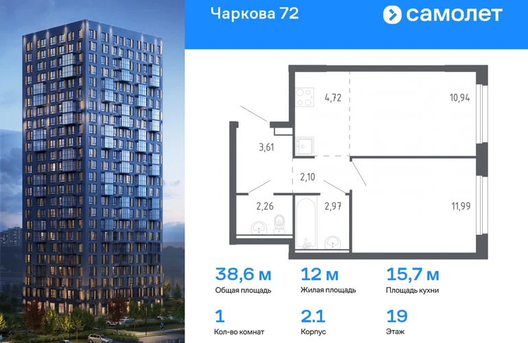 Предлагается 1-комнатная квартира комфорт-класса 38,59 кв.м в корпусе 2.1 на 19 этаже, в ЖК «Чаркова 72» Квартира с чистовой отделкой. Доступность дополнительных опций уточняйте у застройщика. Приобрести квартиру возможно по специальным акциям от застройщика, с текущими условиями акций можно ознакомиться в блоке «Акций». Цена динамическая и может отличаться, уточняйте актуальность у застройщика. Идеальное сочетание городского комфорта и размеренной жизни — квартал «Чаркова 72» на северо-востоке города. В дизайне 17-24-этажных домов с панорамными балконами нашли отражение нотки сибирской природы. От «Чаркова 72» удобно добираться до центра города — всего 17 минут пути. А в 2 минутах от дома находится Тобольский тракт. Для семейного отдыха отлично подойдет парк Гагарина — он находится в 7 минутах от квартала. В закрытых дворах тихо и уютно — все авто остались на одном из 4 многоуровневых паркингов, которые находятся за территорией квартала. Можно спокойно гулять по бульвару и заниматься йогой на спортивной площадке. На первых этажах домов — кафе и магазины. Рядом с проектом — детские сады и школы, городская поликлиника и МФЦ. Во всех квартирах есть выводы под кондиционеры, на подземных этажах — индивидуальные кладовые, на первых — места для хранения велосипедов и колясок. В квартирах можно выбрать варианты отделки: чистовая, черновая и улучшенная из материалов повышенного класса.#yan19-2r1574146#О застройщике