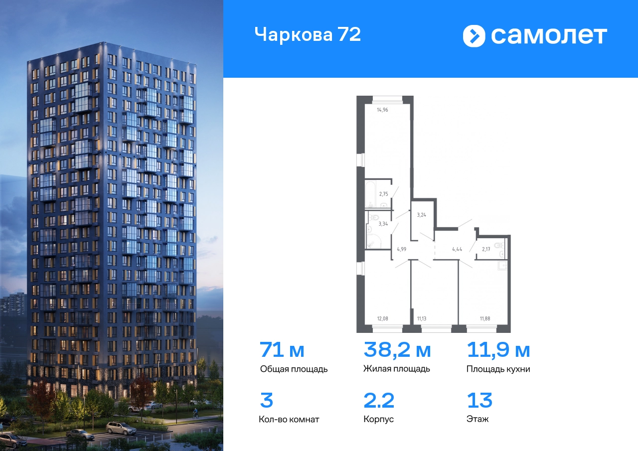 Строим кварталы для жизни с заботой о будущем. Предлагается 3-комнатная квартира комфорт-класса 70,98 кв.м в корпусе 2.2 на 13 этаже, в ЖК «Чаркова 72» Квартира с чистовой отделкой. Доступность дополнительных опций уточняйте у застройщика. Приобрести квартиру возможно по специальным акциям от застройщика, с текущими условиями акций можно ознакомиться в блоке «Акций». Цена динамическая и может отличаться, уточняйте актуальность у застройщика. Идеальное сочетание городского комфорта и размеренной жизни — квартал «Чаркова 72» на северо-востоке города. В дизайне 17-24-этажных домов с панорамными балконами нашли отражение нотки сибирской природы. От «Чаркова 72» удобно добираться до центра города — всего 17 минут пути. А в 2 минутах от дома находится Тобольский тракт. Для семейного отдыха отлично подойдет парк Гагарина — он находится в 7 минутах от квартала. В закрытых дворах тихо и уютно — все авто остались на одном из 4 многоуровневых паркингов, которые находятся за территорией квартала. Можно спокойно гулять по бульвару и заниматься йогой на спортивной площадке. На первых этажах домов — кафе и магазины. Рядом с проектом — детские сады и школы, городская поликлиника и МФЦ. Во всех квартирах есть выводы под кондиционеры, на подземных этажах — индивидуальные кладовые, на первых — места для хранения велосипедов и колясок. В квартирах можно выбрать варианты отделки: чистовая, черновая и улучшенная из материалов повышенного класса.#yan19-2r1585501#О застройщике