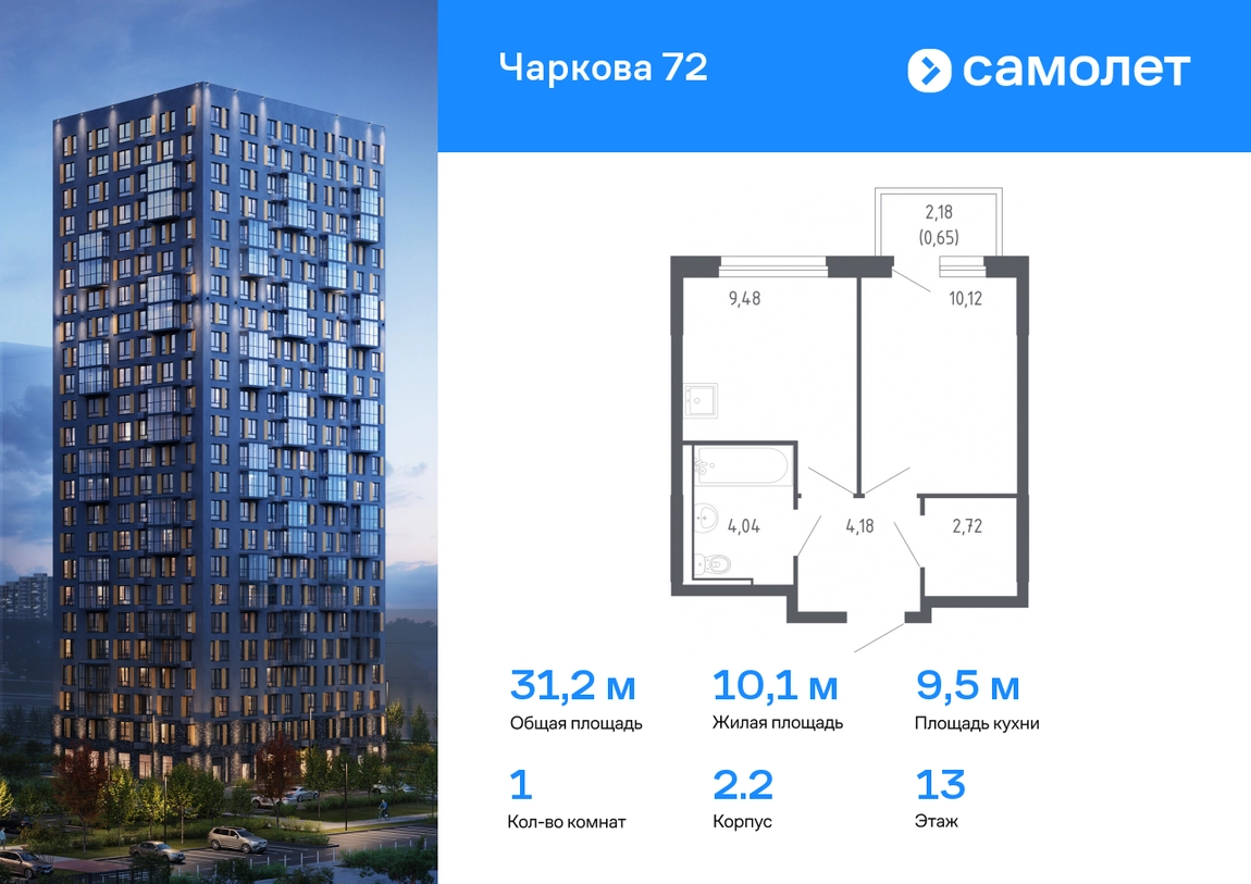 Строим кварталы для жизни с заботой о будущем. Предлагается 1-комнатная квартира комфорт-класса 31,19 кв.м в корпусе 2.2 на 13 этаже, в ЖК «Чаркова 72» Квартира с предчистовой отделкой. Доступность дополнительных опций уточняйте у застройщика. Приобрести квартиру возможно по специальным акциям от застройщика, с текущими условиями акций можно ознакомиться в блоке «Акций». Цена динамическая и может отличаться, уточняйте актуальность у застройщика. Идеальное сочетание городского комфорта и размеренной жизни — квартал «Чаркова 72» на северо-востоке города. В дизайне 17-24-этажных домов с панорамными балконами нашли отражение нотки сибирской природы. От «Чаркова 72» удобно добираться до центра города — всего 17 минут пути. А в 2 минутах от дома находится Тобольский тракт. Для семейного отдыха отлично подойдет парк Гагарина — он находится в 7 минутах от квартала. В закрытых дворах тихо и уютно — все авто остались на одном из 4 многоуровневых паркингов, которые находятся за территорией квартала. Можно спокойно гулять по бульвару и заниматься йогой на спортивной площадке. На первых этажах домов — кафе и магазины. Рядом с проектом — детские сады и школы, городская поликлиника и МФЦ. Во всех квартирах есть выводы под кондиционеры, на подземных этажах — индивидуальные кладовые, на первых — места для хранения велосипедов и колясок. В квартирах можно выбрать варианты отделки: чистовая, черновая и улучшенная из материалов повышенного класса.#yan19-2r1585536#О застройщике