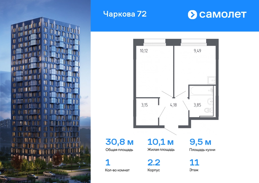 Строим кварталы для жизни с заботой о будущем. Предлагается 1-комнатная квартира комфорт-класса 30,79 кв.м в корпусе 2.2 на 11 этаже, в ЖК «Чаркова 72» Квартира с предчистовой отделкой. Доступность дополнительных опций уточняйте у застройщика. Приобрести квартиру возможно по специальным акциям от застройщика, с текущими условиями акций можно ознакомиться в блоке «Акций». Цена динамическая и может отличаться, уточняйте актуальность у застройщика. Идеальное сочетание городского комфорта и размеренной жизни — квартал «Чаркова 72» на северо-востоке города. В дизайне 17-24-этажных домов с панорамными балконами нашли отражение нотки сибирской природы. От «Чаркова 72» удобно добираться до центра города — всего 17 минут пути. А в 2 минутах от дома находится Тобольский тракт. Для семейного отдыха отлично подойдет парк Гагарина — он находится в 7 минутах от квартала. В закрытых дворах тихо и уютно — все авто остались на одном из 4 многоуровневых паркингов, которые находятся за территорией квартала. Можно спокойно гулять по бульвару и заниматься йогой на спортивной площадке. На первых этажах домов — кафе и магазины. Рядом с проектом — детские сады и школы, городская поликлиника и МФЦ. Во всех квартирах есть выводы под кондиционеры, на подземных этажах — индивидуальные кладовые, на первых — места для хранения велосипедов и колясок. В квартирах можно выбрать варианты отделки: чистовая, черновая и улучшенная из материалов повышенного класса.#yan19-2r1604667#О застройщике