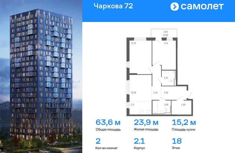 Строим кварталы для жизни с заботой о будущем. Предлагается 2-комнатная квартира комфорт-класса 63,62 кв.м в корпусе 2.1 на 18 этаже, в ЖК «Чаркова 72» Квартира с чистовой отделкой. Доступность дополнительных опций уточняйте у застройщика. Приобрести квартиру возможно по специальным акциям от застройщика, с текущими условиями акций можно ознакомиться в блоке «Акций». Цена динамическая и может отличаться, уточняйте актуальность у застройщика. Идеальное сочетание городского комфорта и размеренной жизни — квартал «Чаркова 72» на северо-востоке города. В дизайне 17-24-этажных домов с панорамными балконами нашли отражение нотки сибирской природы. От «Чаркова 72» удобно добираться до центра города — всего 17 минут пути. А в 2 минутах от дома находится Тобольский тракт. Для семейного отдыха отлично подойдет парк Гагарина — он находится в 7 минутах от квартала. В закрытых дворах тихо и уютно — все авто остались на одном из 4 многоуровневых паркингов, которые находятся за территорией квартала. Можно спокойно гулять по бульвару и заниматься йогой на спортивной площадке. На первых этажах домов — кафе и магазины. Рядом с проектом — детские сады и школы, городская поликлиника и МФЦ. Во всех квартирах есть выводы под кондиционеры, на подземных этажах — индивидуальные кладовые, на первых — места для хранения велосипедов и колясок. В квартирах можно выбрать варианты отделки: чистовая, черновая и улучшенная из материалов повышенного класса.#yan19-2r1621705#О застройщике