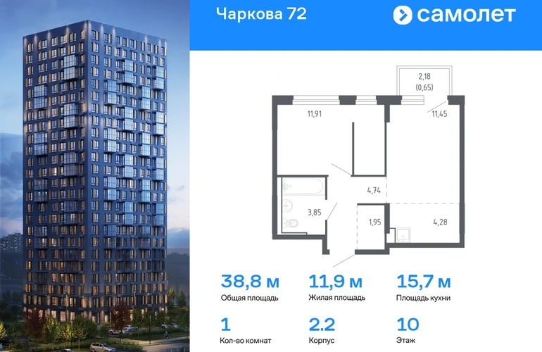 Строим кварталы для жизни с заботой о будущем. Предлагается 1-комнатная квартира комфорт-класса 38,83 кв.м в корпусе 2.2 на 10 этаже, в ЖК «Чаркова 72» Квартира с предчистовой отделкой. Доступность дополнительных опций уточняйте у застройщика. Приобрести квартиру возможно по специальным акциям от застройщика, с текущими условиями акций можно ознакомиться в блоке «Акций». Цена динамическая и может отличаться, уточняйте актуальность у застройщика. Идеальное сочетание городского комфорта и размеренной жизни — квартал «Чаркова 72» на северо-востоке города. В дизайне 17-24-этажных домов с панорамными балконами нашли отражение нотки сибирской природы. От «Чаркова 72» удобно добираться до центра города — всего 17 минут пути. А в 2 минутах от дома находится Тобольский тракт. Для семейного отдыха отлично подойдет парк Гагарина — он находится в 7 минутах от квартала. В закрытых дворах тихо и уютно — все авто остались на одном из 4 многоуровневых паркингов, которые находятся за территорией квартала. Можно спокойно гулять по бульвару и заниматься йогой на спортивной площадке. На первых этажах домов — кафе и магазины. Рядом с проектом — детские сады и школы, городская поликлиника и МФЦ. Во всех квартирах есть выводы под кондиционеры, на подземных этажах — индивидуальные кладовые, на первых — места для хранения велосипедов и колясок. В квартирах можно выбрать варианты отделки: чистовая, черновая и улучшенная из материалов повышенного класса.#yan19-2r1667668#О застройщике