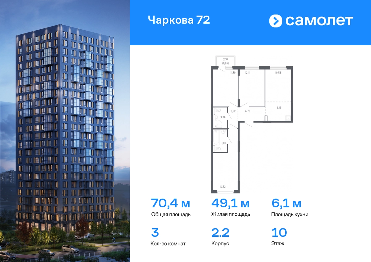 Строим кварталы для жизни с заботой о будущем. Предлагается 3-комнатная квартира комфорт-класса 70,36 кв.м в корпусе 2.2 на 10 этаже, в ЖК «Чаркова 72» Квартира с предчистовой отделкой. Доступность дополнительных опций уточняйте у застройщика. Приобрести квартиру возможно по специальным акциям от застройщика, с текущими условиями акций можно ознакомиться в блоке «Акций». Цена динамическая и может отличаться, уточняйте актуальность у застройщика. Идеальное сочетание городского комфорта и размеренной жизни — квартал «Чаркова 72» на северо-востоке города. В дизайне 17-24-этажных домов с панорамными балконами нашли отражение нотки сибирской природы. От «Чаркова 72» удобно добираться до центра города — всего 17 минут пути. А в 2 минутах от дома находится Тобольский тракт. Для семейного отдыха отлично подойдет парк Гагарина — он находится в 7 минутах от квартала. В закрытых дворах тихо и уютно — все авто остались на одном из 4 многоуровневых паркингов, которые находятся за территорией квартала. Можно спокойно гулять по бульвару и заниматься йогой на спортивной площадке. На первых этажах домов — кафе и магазины. Рядом с проектом — детские сады и школы, городская поликлиника и МФЦ. Во всех квартирах есть выводы под кондиционеры, на подземных этажах — индивидуальные кладовые, на первых — места для хранения велосипедов и колясок. В квартирах можно выбрать варианты отделки: чистовая, черновая и улучшенная из материалов повышенного класса.#yan19-2r1667671#О застройщике