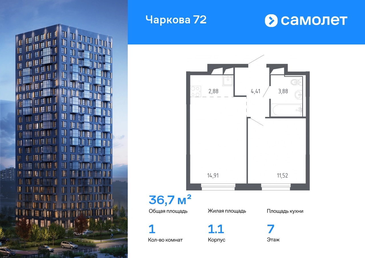 Строим кварталы для жизни с заботой о будущем. Предлагается 1-комнатная квартира комфорт-класса 36,7 кв.м в корпусе 1.1 на 7 этаже, в ЖК «Чаркова 72» Квартира с чистовой отделкой. Доступность дополнительных опций уточняйте у застройщика. Приобрести квартиру возможно по специальным акциям от застройщика, с текущими условиями акций можно ознакомиться в блоке «Акций». Цена динамическая и может отличаться, уточняйте актуальность у застройщика. Идеальное сочетание городского комфорта и размеренной жизни — квартал «Чаркова 72» на северо-востоке города. В дизайне 17-24-этажных домов с панорамными балконами нашли отражение нотки сибирской природы. От «Чаркова 72» удобно добираться до центра города — всего 17 минут пути. А в 2 минутах от дома находится Тобольский тракт. Для семейного отдыха отлично подойдет парк Гагарина — он находится в 7 минутах от квартала. В закрытых дворах тихо и уютно — все авто остались на одном из 4 многоуровневых паркингов, которые находятся за территорией квартала. Можно спокойно гулять по бульвару и заниматься йогой на спортивной площадке. На первых этажах домов — кафе и магазины. Рядом с проектом — детские сады и школы, городская поликлиника и МФЦ. Во всех квартирах есть выводы под кондиционеры, на подземных этажах — индивидуальные кладовые, на первых — места для хранения велосипедов и колясок. В квартирах можно выбрать варианты отделки: чистовая, черновая и улучшенная из материалов повышенного класса.#yan19-2r1669473#О застройщике