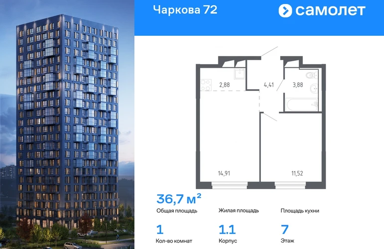 Строим кварталы для жизни с заботой о будущем. Предлагается 1-комнатная квартира комфорт-класса 36,7 кв.м в корпусе 1.1 на 7 этаже, в ЖК «Чаркова 72» Квартира с чистовой отделкой. Доступность дополнительных опций уточняйте у застройщика. Приобрести квартиру возможно по специальным акциям от застройщика, с текущими условиями акций можно ознакомиться в блоке «Акций». Цена динамическая и может отличаться, уточняйте актуальность у застройщика. Идеальное сочетание городского комфорта и размеренной жизни — квартал «Чаркова 72» на северо-востоке города. В дизайне 17-24-этажных домов с панорамными балконами нашли отражение нотки сибирской природы. От «Чаркова 72» удобно добираться до центра города — всего 17 минут пути. А в 2 минутах от дома находится Тобольский тракт. Для семейного отдыха отлично подойдет парк Гагарина — он находится в 7 минутах от квартала. В закрытых дворах тихо и уютно — все авто остались на одном из 4 многоуровневых паркингов, которые находятся за территорией квартала. Можно спокойно гулять по бульвару и заниматься йогой на спортивной площадке. На первых этажах домов — кафе и магазины. Рядом с проектом — детские сады и школы, городская поликлиника и МФЦ. Во всех квартирах есть выводы под кондиционеры, на подземных этажах — индивидуальные кладовые, на первых — места для хранения велосипедов и колясок. В квартирах можно выбрать варианты отделки: чистовая, черновая и улучшенная из материалов повышенного класса.#yan19-2r1669473#О застройщике