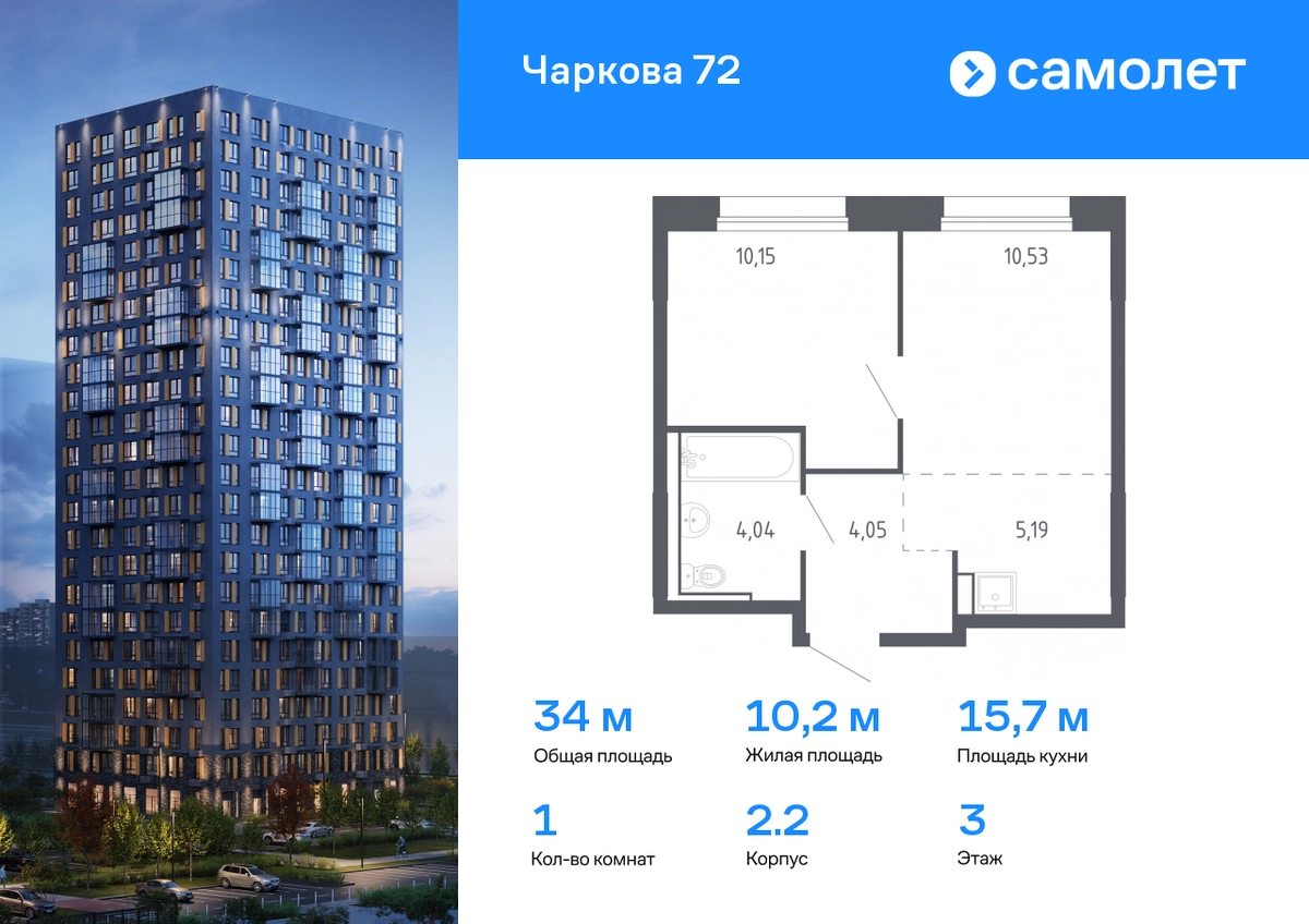 Строим кварталы для жизни с заботой о будущем. Предлагается 1-комнатная квартира комфорт-класса 33,96 кв.м в корпусе 2.2 на 3 этаже, в ЖК «Чаркова 72» Квартира с предчистовой отделкой. Доступность дополнительных опций уточняйте у застройщика. Приобрести квартиру возможно по специальным акциям от застройщика, с текущими условиями акций можно ознакомиться в блоке «Акций». Цена динамическая и может отличаться, уточняйте актуальность у застройщика. Идеальное сочетание городского комфорта и размеренной жизни — квартал «Чаркова 72» на северо-востоке города. В дизайне 17-24-этажных домов с панорамными балконами нашли отражение нотки сибирской природы. От «Чаркова 72» удобно добираться до центра города — всего 17 минут пути. А в 2 минутах от дома находится Тобольский тракт. Для семейного отдыха отлично подойдет парк Гагарина — он находится в 7 минутах от квартала. В закрытых дворах тихо и уютно — все авто остались на одном из 4 многоуровневых паркингов, которые находятся за территорией квартала. Можно спокойно гулять по бульвару и заниматься йогой на спортивной площадке. На первых этажах домов — кафе и магазины. Рядом с проектом — детские сады и школы, городская поликлиника и МФЦ. Во всех квартирах есть выводы под кондиционеры, на подземных этажах — индивидуальные кладовые, на первых — места для хранения велосипедов и колясок. В квартирах можно выбрать варианты отделки: чистовая, черновая и улучшенная из материалов повышенного класса.#yan19-2r1694060#О застройщике