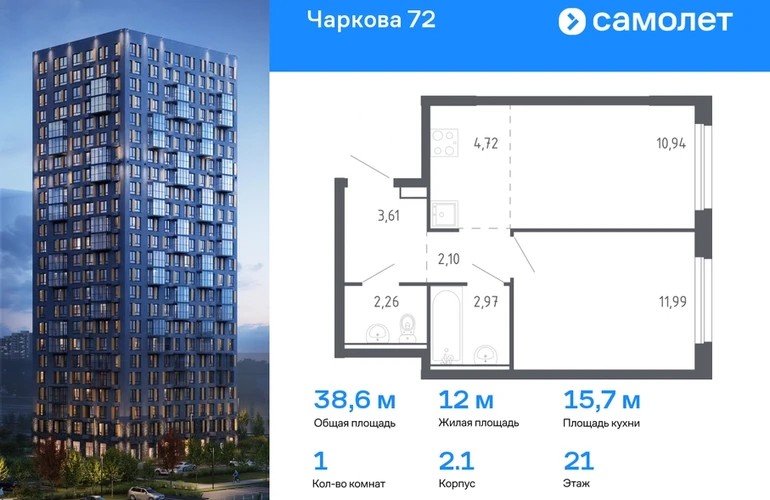 Строим кварталы для жизни с заботой о будущем. Предлагается 1-комнатная квартира комфорт-класса 38,59 кв.м в корпусе 2.1 на 21 этаже, в ЖК «Чаркова 72» Квартира с чистовой отделкой. Доступность дополнительных опций уточняйте у застройщика. Приобрести квартиру возможно по специальным акциям от застройщика, с текущими условиями акций можно ознакомиться в блоке «Акций». Цена динамическая и может отличаться, уточняйте актуальность у застройщика. Идеальное сочетание городского комфорта и размеренной жизни — квартал «Чаркова 72» на северо-востоке города. В дизайне 17-24-этажных домов с панорамными балконами нашли отражение нотки сибирской природы. От «Чаркова 72» удобно добираться до центра города — всего 17 минут пути. А в 2 минутах от дома находится Тобольский тракт. Для семейного отдыха отлично подойдет парк Гагарина — он находится в 7 минутах от квартала. В закрытых дворах тихо и уютно — все авто остались на одном из 4 многоуровневых паркингов, которые находятся за территорией квартала. Можно спокойно гулять по бульвару и заниматься йогой на спортивной площадке. На первых этажах домов — кафе и магазины. Рядом с проектом — детские сады и школы, городская поликлиника и МФЦ. Во всех квартирах есть выводы под кондиционеры, на подземных этажах — индивидуальные кладовые, на первых — места для хранения велосипедов и колясок. В квартирах можно выбрать варианты отделки: чистовая, черновая и улучшенная из материалов повышенного класса.#yan19-2r1744971#О застройщике