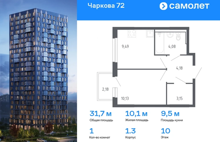 Строим кварталы для жизни с заботой о будущем. Предлагается 1-комнатная квартира комфорт-класса 31,68 кв.м в корпусе 1.3 на 10 этаже, в ЖК «Чаркова 72» Квартира с предчистовой отделкой. Доступность дополнительных опций уточняйте у застройщика. Приобрести квартиру возможно по специальным акциям от застройщика, с текущими условиями акций можно ознакомиться в блоке «Акций». Цена динамическая и может отличаться, уточняйте актуальность у застройщика. Идеальное сочетание городского комфорта и размеренной жизни — квартал «Чаркова 72» на северо-востоке города. В дизайне 17-24-этажных домов с панорамными балконами нашли отражение нотки сибирской природы. От «Чаркова 72» удобно добираться до центра города — всего 17 минут пути. А в 2 минутах от дома находится Тобольский тракт. Для семейного отдыха отлично подойдет парк Гагарина — он находится в 7 минутах от квартала. В закрытых дворах тихо и уютно — все авто остались на одном из 4 многоуровневых паркингов, которые находятся за территорией квартала. Можно спокойно гулять по бульвару и заниматься йогой на спортивной площадке. На первых этажах домов — кафе и магазины. Рядом с проектом — детские сады и школы, городская поликлиника и МФЦ. Во всех квартирах есть выводы под кондиционеры, на подземных этажах — индивидуальные кладовые, на первых — места для хранения велосипедов и колясок. В квартирах можно выбрать варианты отделки: чистовая, черновая и улучшенная из материалов повышенного класса.#yan19-2r1747351#О застройщике
