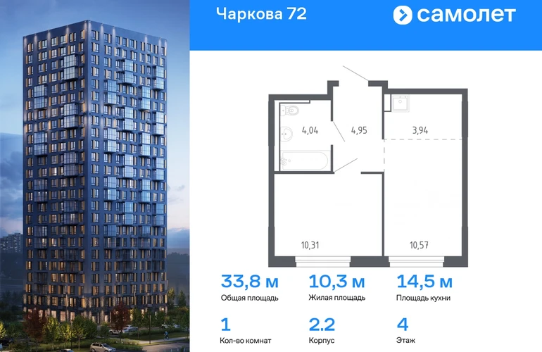 Предлагается 1-комнатная квартира комфорт-класса 33,81 кв.м в корпусе 2.2 на 4 этаже, в ЖК «Чаркова 72» Квартира с чистовой отделкой. Доступность дополнительных опций уточняйте у застройщика. Приобрести квартиру возможно по специальным акциям от застройщика, с текущими условиями акций можно ознакомиться в блоке “Акций”. Цена динамическая и может отличаться, уточняйте актуальность у застройщика. Идеальное сочетание городского комфорта и размеренной жизни — квартал «Чаркова 72» на северо-востоке города. В дизайне 17-24-этажных домов с панорамными балконами нашли отражение нотки сибирской природы. От «Чаркова 72» удобно добираться до центра города — всего 17 минут пути. А в 2 минутах от дома находится Тобольский тракт. Для семейного отдыха отлично подойдет парк Гагарина — он находится в 7 минутах от квартала. В закрытых дворах тихо и уютно — все авто остались на одном из 4 многоуровневых паркингов, которые находятся за территорией квартала. Можно спокойно гулять по бульвару и заниматься йогой на спортивной площадке. На первых этажах домов — кафе и магазины. Рядом с проектом — детские сады и школы, городская поликлиника и МФЦ. Во всех квартирах есть выводы под кондиционеры, на подземных этажах — индивидуальные кладовые, на первых — места для хранения велосипедов и колясок. В квартирах можно выбрать варианты отделки: чистовая, черновая и улучшенная из материалов повышенного класса.#yan19-2r1772430#О застройщике