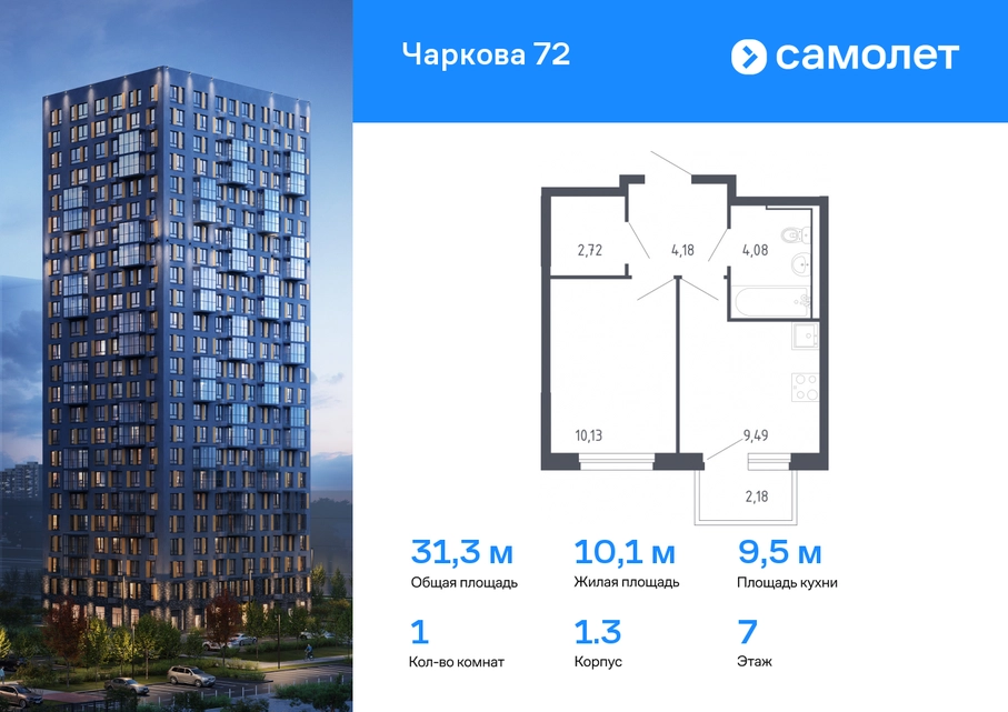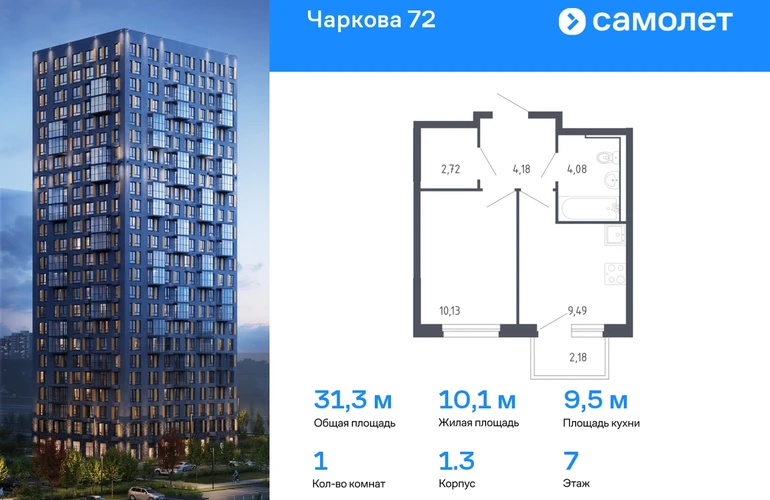 Строим кварталы для жизни с заботой о будущем. Предлагается 1-комнатная квартира комфорт-класса 31,25 кв.м в корпусе 1.3 на 7 этаже, в ЖК «Чаркова 72» Квартира с предчистовой отделкой. Доступность дополнительных опций уточняйте у застройщика. Приобрести квартиру возможно по специальным акциям от застройщика, с текущими условиями акций можно ознакомиться в блоке «Акций». Цена динамическая и может отличаться, уточняйте актуальность у застройщика. Идеальное сочетание городского комфорта и размеренной жизни — квартал «Чаркова 72» на северо-востоке города. В дизайне 17-24-этажных домов с панорамными балконами нашли отражение нотки сибирской природы. От «Чаркова 72» удобно добираться до центра города — всего 17 минут пути. А в 2 минутах от дома находится Тобольский тракт. Для семейного отдыха отлично подойдет парк Гагарина — он находится в 7 минутах от квартала. В закрытых дворах тихо и уютно — все авто остались на одном из 4 многоуровневых паркингов, которые находятся за территорией квартала. Можно спокойно гулять по бульвару и заниматься йогой на спортивной площадке. На первых этажах домов — кафе и магазины. Рядом с проектом — детские сады и школы, городская поликлиника и МФЦ. Во всех квартирах есть выводы под кондиционеры, на подземных этажах — индивидуальные кладовые, на первых — места для хранения велосипедов и колясок. В квартирах можно выбрать варианты отделки: чистовая, черновая и улучшенная из материалов повышенного класса.#yan19-2r1775628#О застройщике