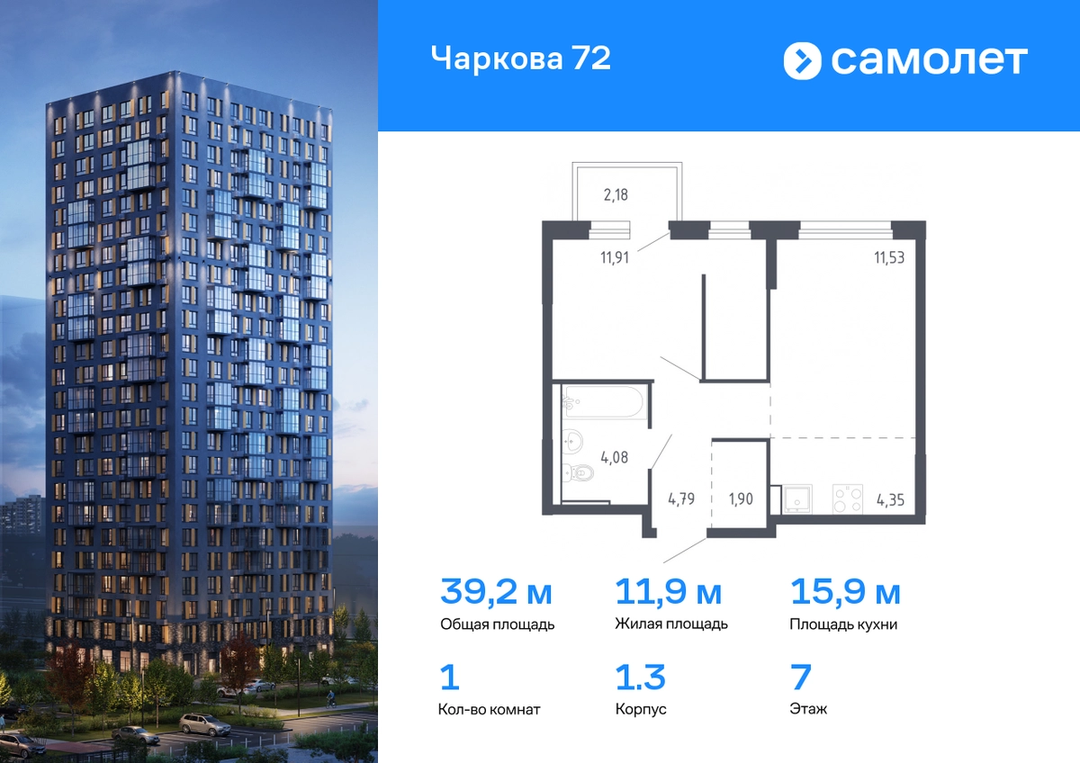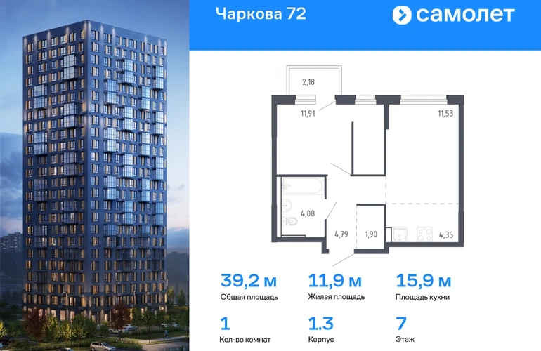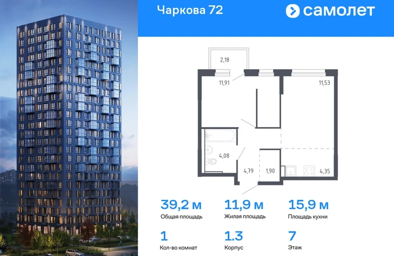 Строим кварталы для жизни с заботой о будущем. Предлагается 1-комнатная квартира комфорт-класса 39,21 кв.м в корпусе 1.3 на 7 этаже, в ЖК «Чаркова 72» Квартира с чистовой отделкой. Доступность дополнительных опций уточняйте у застройщика. Приобрести квартиру возможно по специальным акциям от застройщика, с текущими условиями акций можно ознакомиться в блоке «Акций». Цена динамическая и может отличаться, уточняйте актуальность у застройщика. Идеальное сочетание городского комфорта и размеренной жизни — квартал «Чаркова 72» на северо-востоке города. В дизайне 17-24-этажных домов с панорамными балконами нашли отражение нотки сибирской природы. От «Чаркова 72» удобно добираться до центра города — всего 17 минут пути. А в 2 минутах от дома находится Тобольский тракт. Для семейного отдыха отлично подойдет парк Гагарина — он находится в 7 минутах от квартала. В закрытых дворах тихо и уютно — все авто остались на одном из 4 многоуровневых паркингов, которые находятся за территорией квартала. Можно спокойно гулять по бульвару и заниматься йогой на спортивной площадке. На первых этажах домов — кафе и магазины. Рядом с проектом — детские сады и школы, городская поликлиника и МФЦ. Во всех квартирах есть выводы под кондиционеры, на подземных этажах — индивидуальные кладовые, на первых — места для хранения велосипедов и колясок. В квартирах можно выбрать варианты отделки: чистовая, черновая и улучшенная из материалов повышенного класса.#yan19-2r1775629#О застройщике