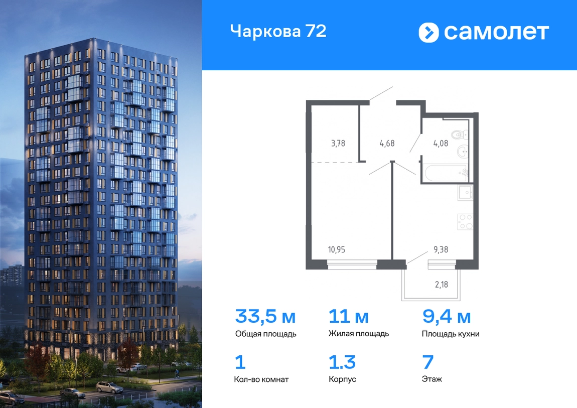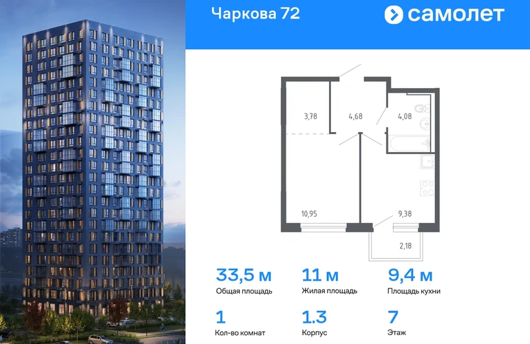 Строим кварталы для жизни с заботой о будущем. Предлагается 1-комнатная квартира комфорт-класса 33,52 кв.м в корпусе 1.3 на 7 этаже, в ЖК «Чаркова 72» Квартира с предчистовой отделкой. Доступность дополнительных опций уточняйте у застройщика. Приобрести квартиру возможно по специальным акциям от застройщика, с текущими условиями акций можно ознакомиться в блоке «Акций». Цена динамическая и может отличаться, уточняйте актуальность у застройщика. Идеальное сочетание городского комфорта и размеренной жизни — квартал «Чаркова 72» на северо-востоке города. В дизайне 17-24-этажных домов с панорамными балконами нашли отражение нотки сибирской природы. От «Чаркова 72» удобно добираться до центра города — всего 17 минут пути. А в 2 минутах от дома находится Тобольский тракт. Для семейного отдыха отлично подойдет парк Гагарина — он находится в 7 минутах от квартала. В закрытых дворах тихо и уютно — все авто остались на одном из 4 многоуровневых паркингов, которые находятся за территорией квартала. Можно спокойно гулять по бульвару и заниматься йогой на спортивной площадке. На первых этажах домов — кафе и магазины. Рядом с проектом — детские сады и школы, городская поликлиника и МФЦ. Во всех квартирах есть выводы под кондиционеры, на подземных этажах — индивидуальные кладовые, на первых — места для хранения велосипедов и колясок. В квартирах можно выбрать варианты отделки: чистовая, черновая и улучшенная из материалов повышенного класса.#yan19-2r1778096#О застройщике