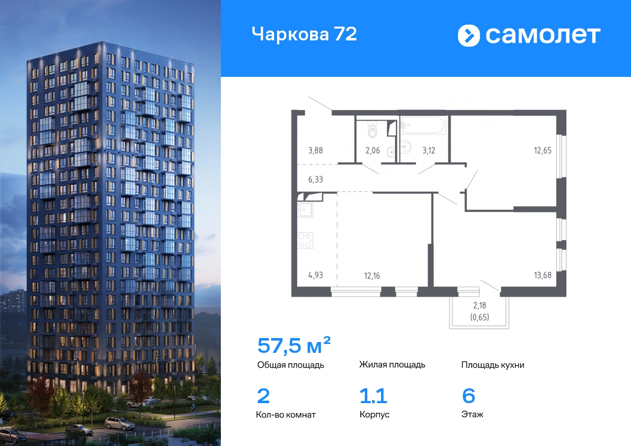 Предлагается 2-комнатная квартира комфорт-класса 57,5 кв.м в корпусе 1.1 на 6 этаже, в ЖК «Чаркова 72» Квартира с чистовой отделкой. Доступность дополнительных опций уточняйте у застройщика. Приобрести квартиру возможно по специальным акциям от застройщика, с текущими условиями акций можно ознакомиться в блоке «Акций». Цена динамическая и может отличаться, уточняйте актуальность у застройщика. Идеальное сочетание городского комфорта и размеренной жизни — квартал «Чаркова 72» на северо-востоке города. В дизайне 17-24-этажных домов с панорамными балконами нашли отражение нотки сибирской природы. От «Чаркова 72» удобно добираться до центра города — всего 17 минут пути. А в 2 минутах от дома находится Тобольский тракт. Для семейного отдыха отлично подойдет парк Гагарина — он находится в 7 минутах от квартала. В закрытых дворах тихо и уютно — все авто остались на одном из 4 многоуровневых паркингов, которые находятся за территорией квартала. Можно спокойно гулять по бульвару и заниматься йогой на спортивной площадке. На первых этажах домов — кафе и магазины. Рядом с проектом — детские сады и школы, городская поликлиника и МФЦ. Во всех квартирах есть выводы под кондиционеры, на подземных этажах — индивидуальные кладовые, на первых — места для хранения велосипедов и колясок. В квартирах можно выбрать варианты отделки: чистовая, черновая и улучшенная из материалов повышенного класса.#yan19-2r1801986#О застройщике