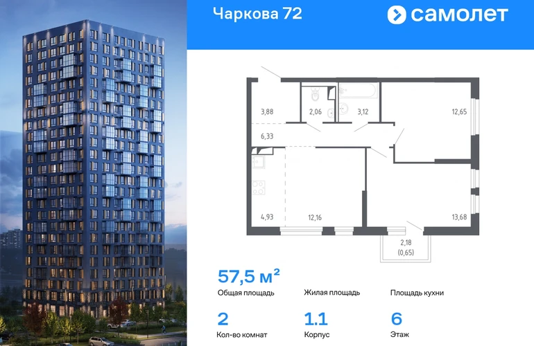 Предлагается 2-комнатная квартира комфорт-класса 57,5 кв.м в корпусе 1.1 на 6 этаже, в ЖК «Чаркова 72» Квартира с чистовой отделкой. Доступность дополнительных опций уточняйте у застройщика. Приобрести квартиру возможно по специальным акциям от застройщика, с текущими условиями акций можно ознакомиться в блоке «Акций». Цена динамическая и может отличаться, уточняйте актуальность у застройщика. Идеальное сочетание городского комфорта и размеренной жизни — квартал «Чаркова 72» на северо-востоке города. В дизайне 17-24-этажных домов с панорамными балконами нашли отражение нотки сибирской природы. От «Чаркова 72» удобно добираться до центра города — всего 17 минут пути. А в 2 минутах от дома находится Тобольский тракт. Для семейного отдыха отлично подойдет парк Гагарина — он находится в 7 минутах от квартала. В закрытых дворах тихо и уютно — все авто остались на одном из 4 многоуровневых паркингов, которые находятся за территорией квартала. Можно спокойно гулять по бульвару и заниматься йогой на спортивной площадке. На первых этажах домов — кафе и магазины. Рядом с проектом — детские сады и школы, городская поликлиника и МФЦ. Во всех квартирах есть выводы под кондиционеры, на подземных этажах — индивидуальные кладовые, на первых — места для хранения велосипедов и колясок. В квартирах можно выбрать варианты отделки: чистовая, черновая и улучшенная из материалов повышенного класса.#yan19-2r1801986#О застройщике